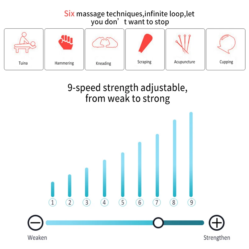 (Manupulate massage;hammer massage;kneading massage;scraping massage;acupuncture massage;cupping massage)