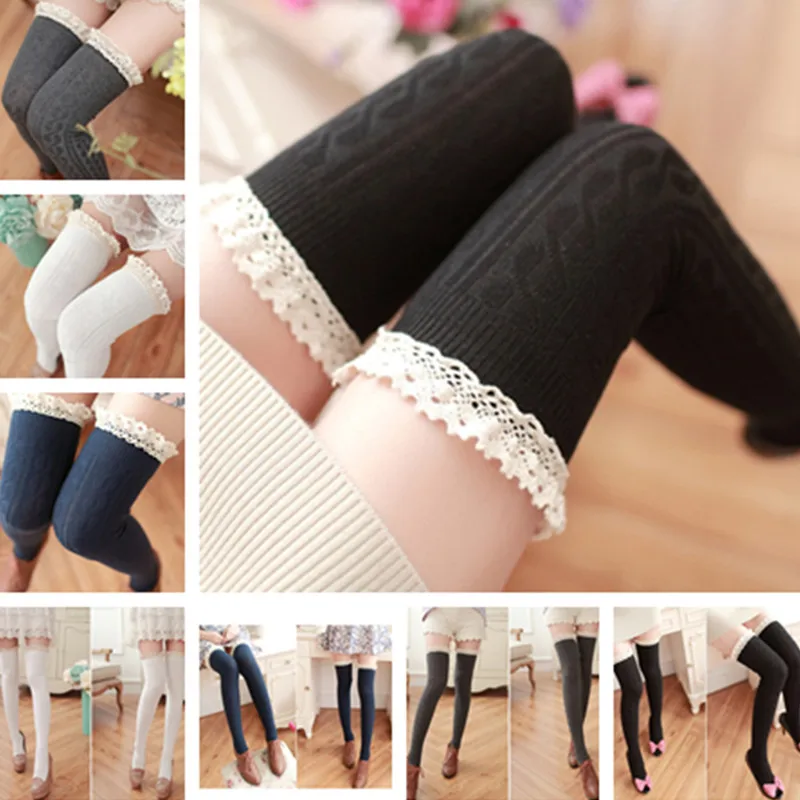 Стиль CМатериал: хлопок,Размер:Подошва носков 19*8 см, высота носков 50 см (включая кружево), погрешность около 3 см=