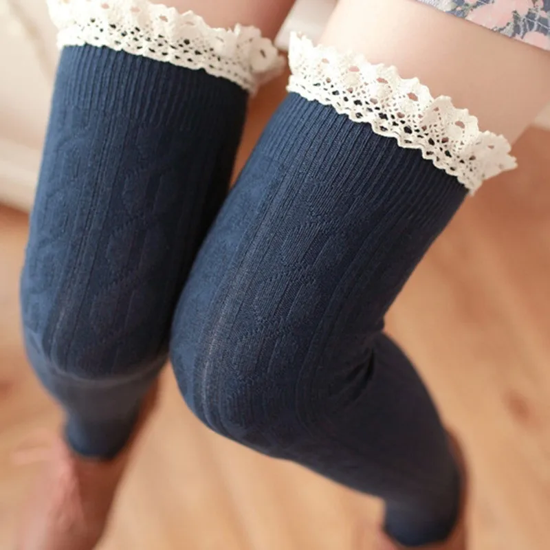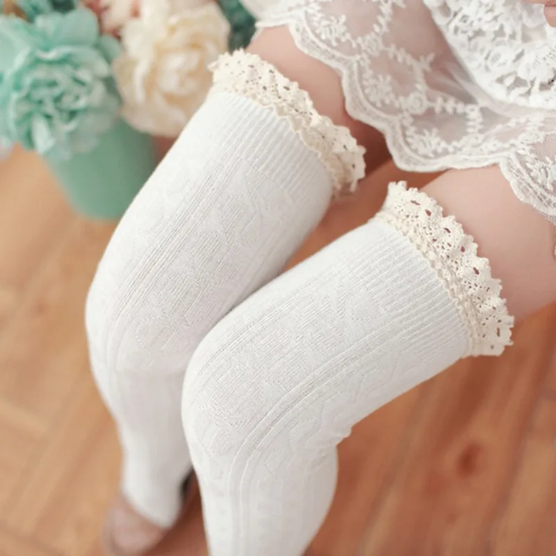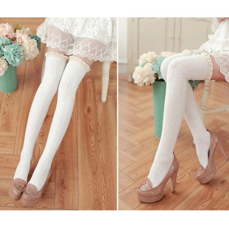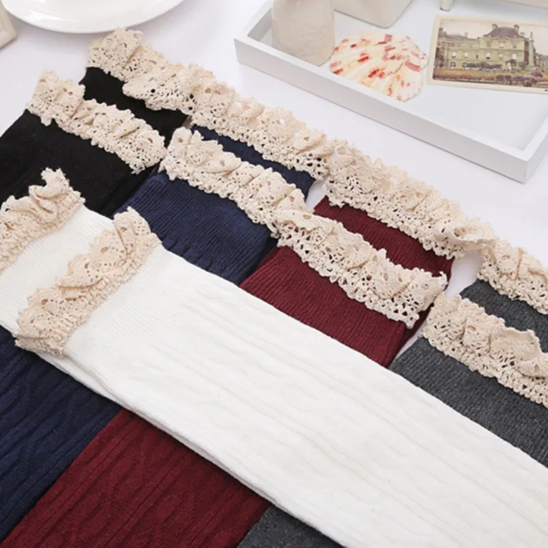 CМатериал: хлопок,Размер:Подошва носков 19*8 см, высота носков 50 см (включая кружево), погрешность около 3 см