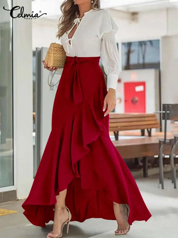 Женская Асимметричная юбка с рюшами Celmia, летняя юбка с рыбим хвостом, модные вечерние юбки макси с высокой талией и поясом, повседневные свободные юбки