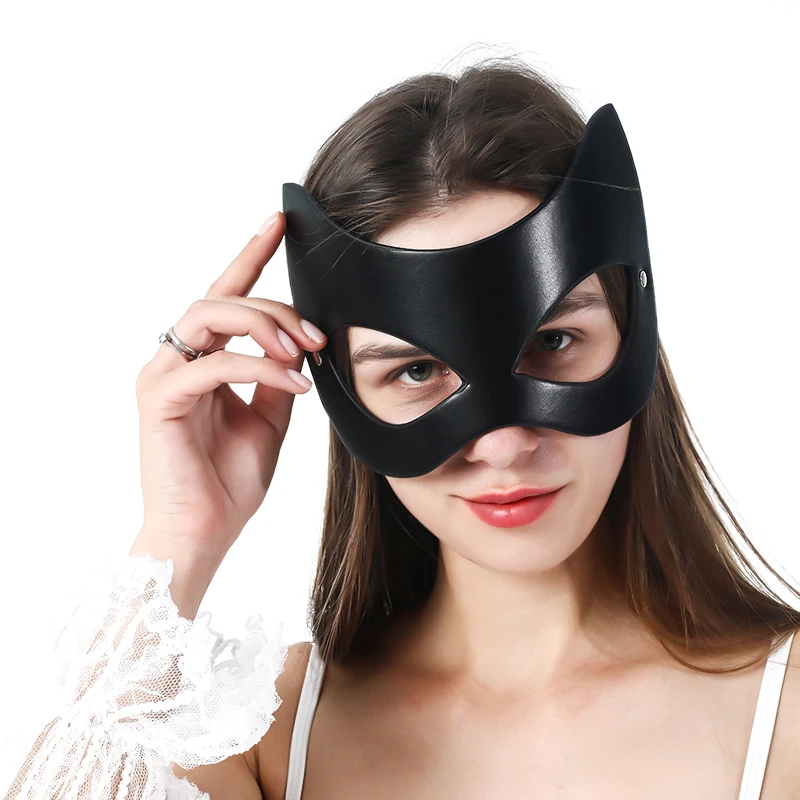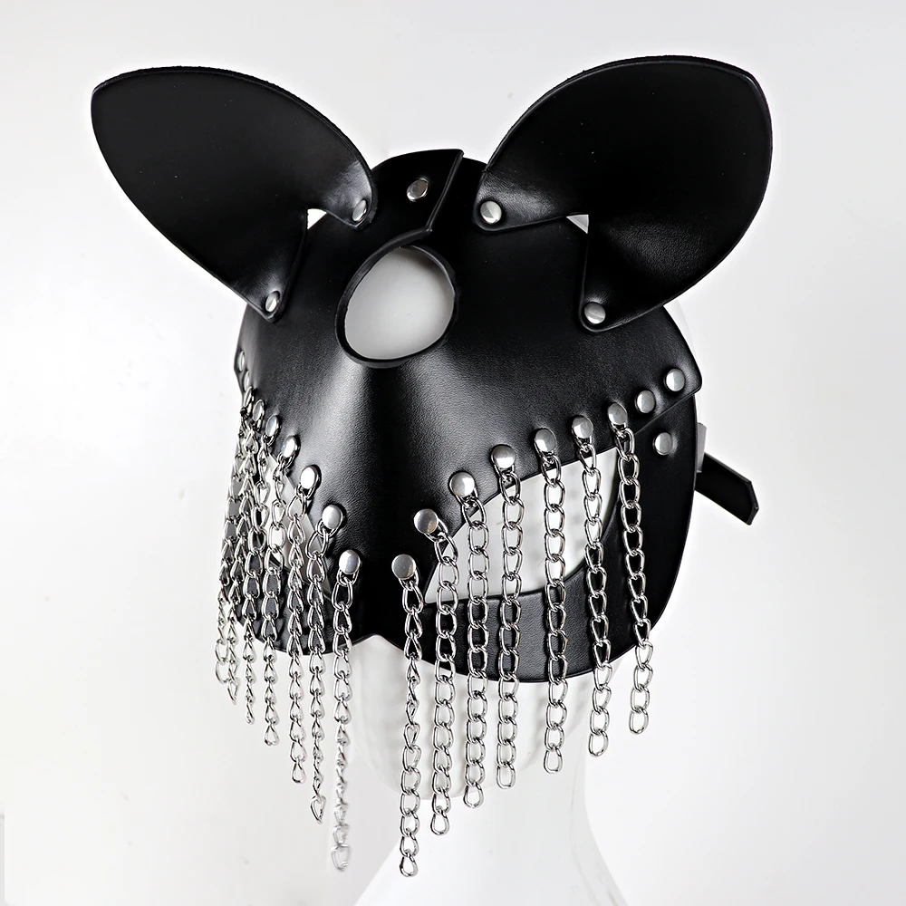 Кожаная маска для БДСМ-кошек, кожаный фетиш, для зрелых женщин, Рейв, карнавал, лицо женщины, для косплея кошки, забавная маска для эротическая цепь