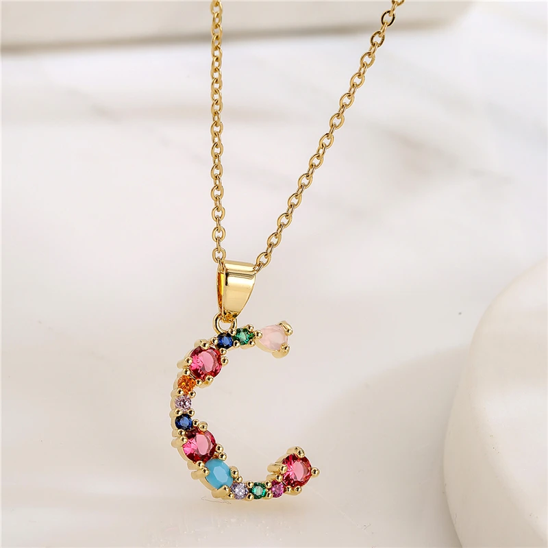 Женское ожерелье с подвеской, ожерелье с 26 подвесками из фианита класса ААА и цветных кристаллов для девушек и женщин, медные ювелирные украшения с инициалом имени, 2021