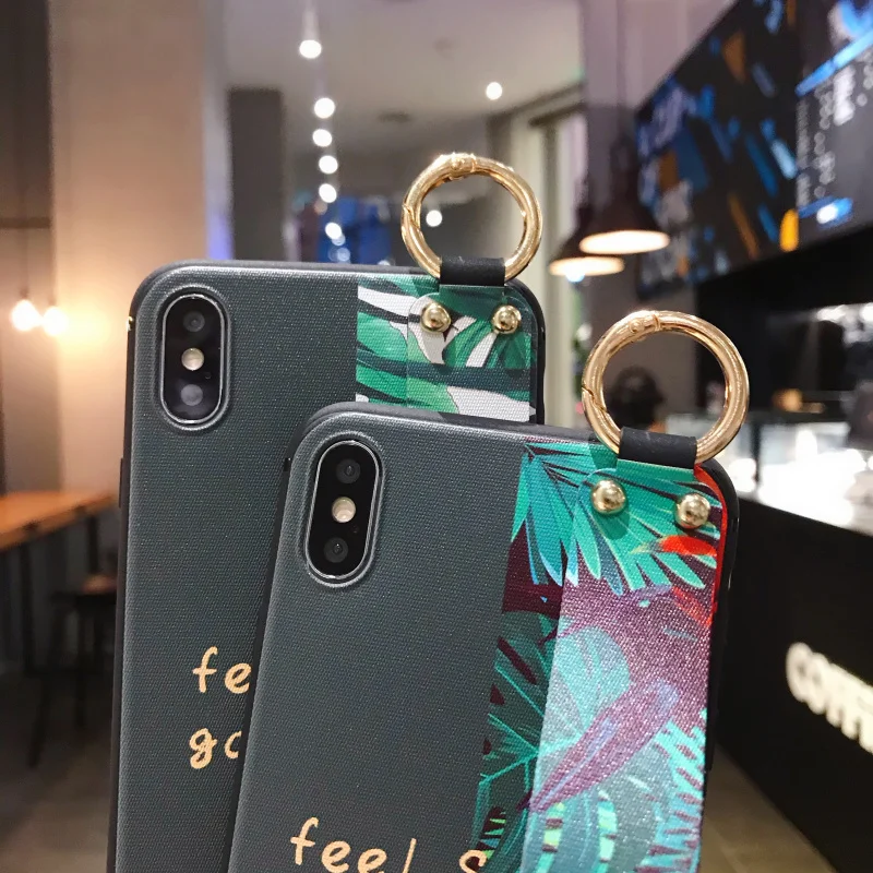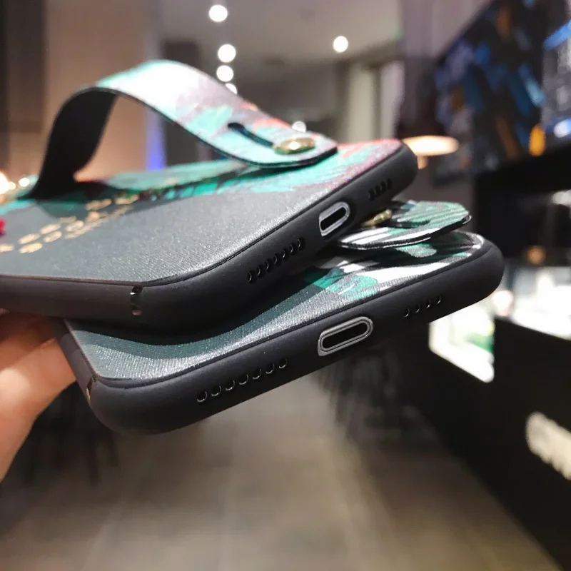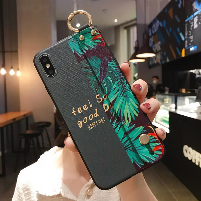 Роскошный 3D чехол с ремешком на запястье с тисненым зеленым банано...
