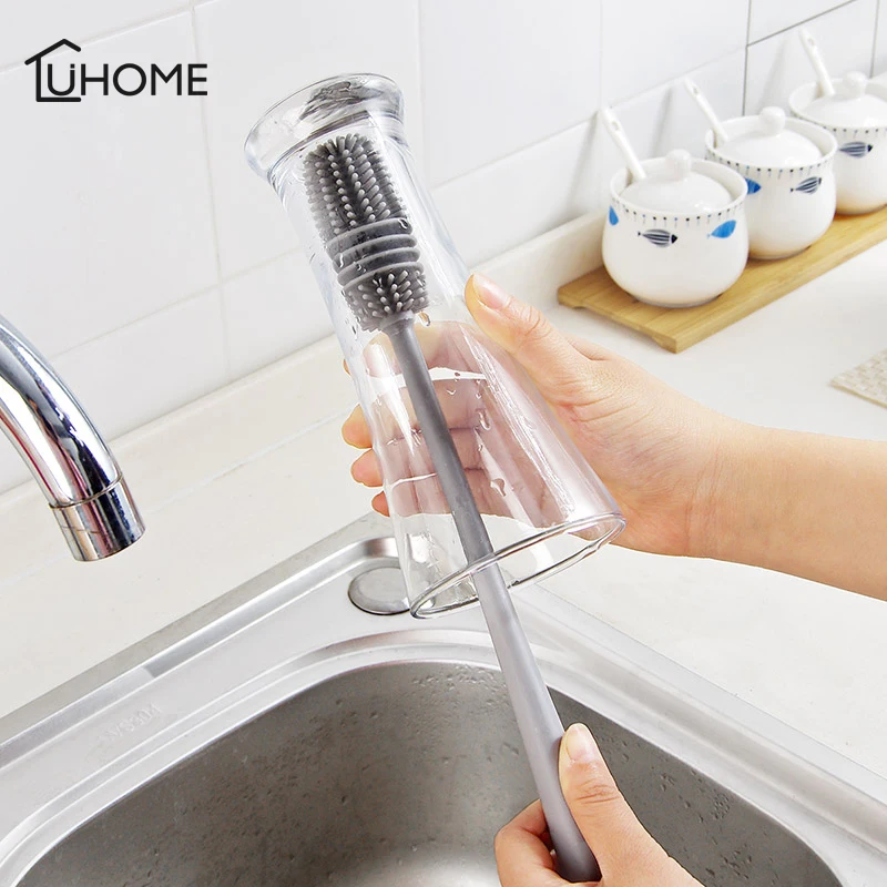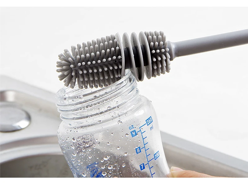 Силиконовая щетка для чистки бутылок, кухонный очиститель с ручкой,...
