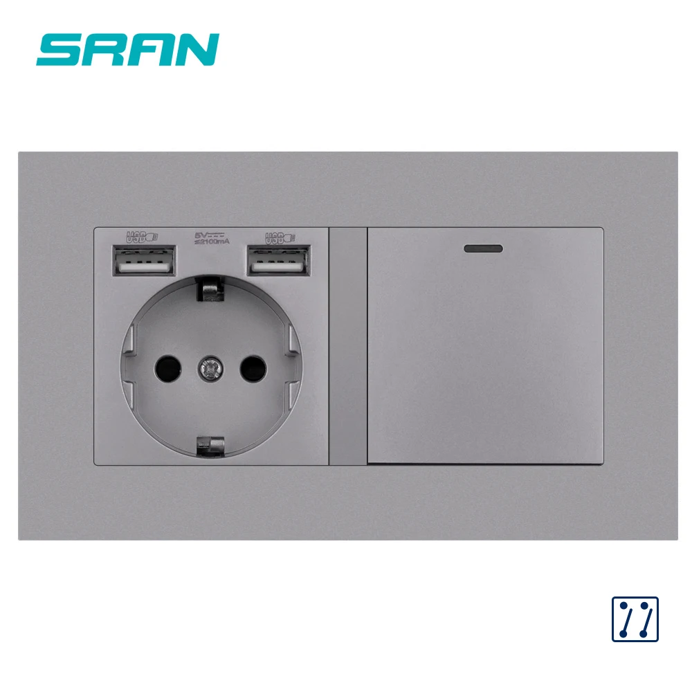 Европейская розетка SRAN с Usb-портом для зарядки, акриловая панель...
