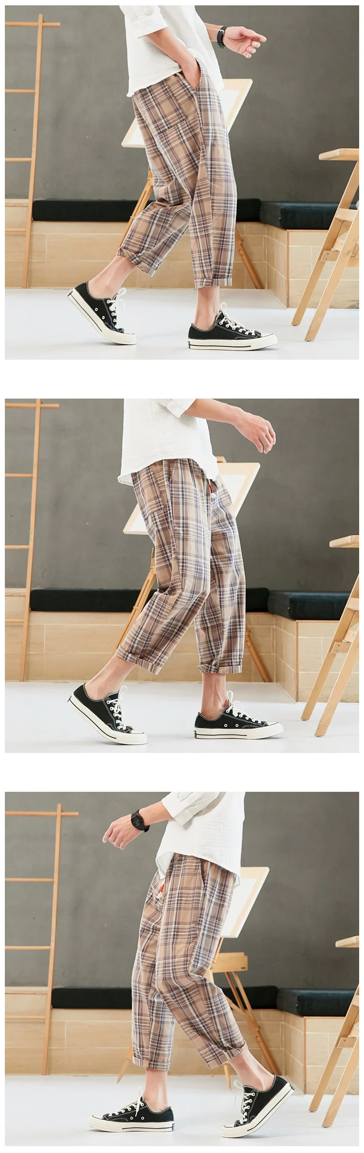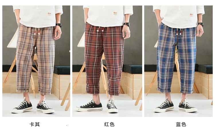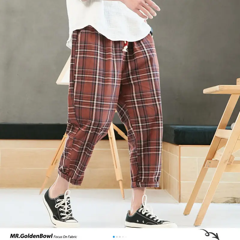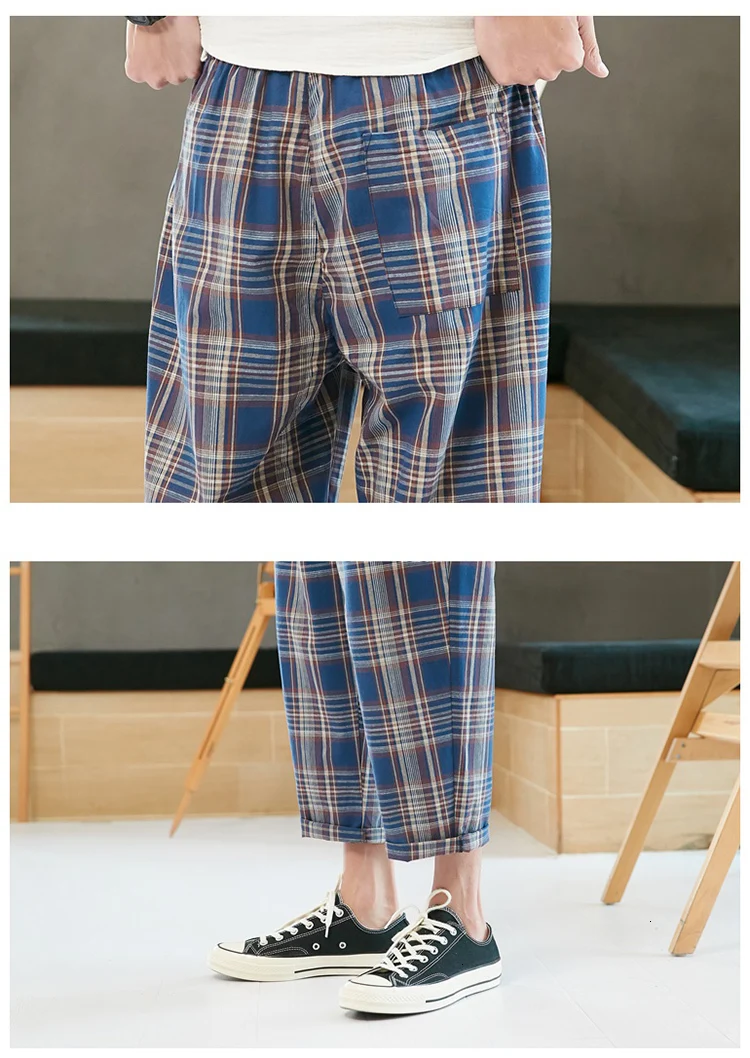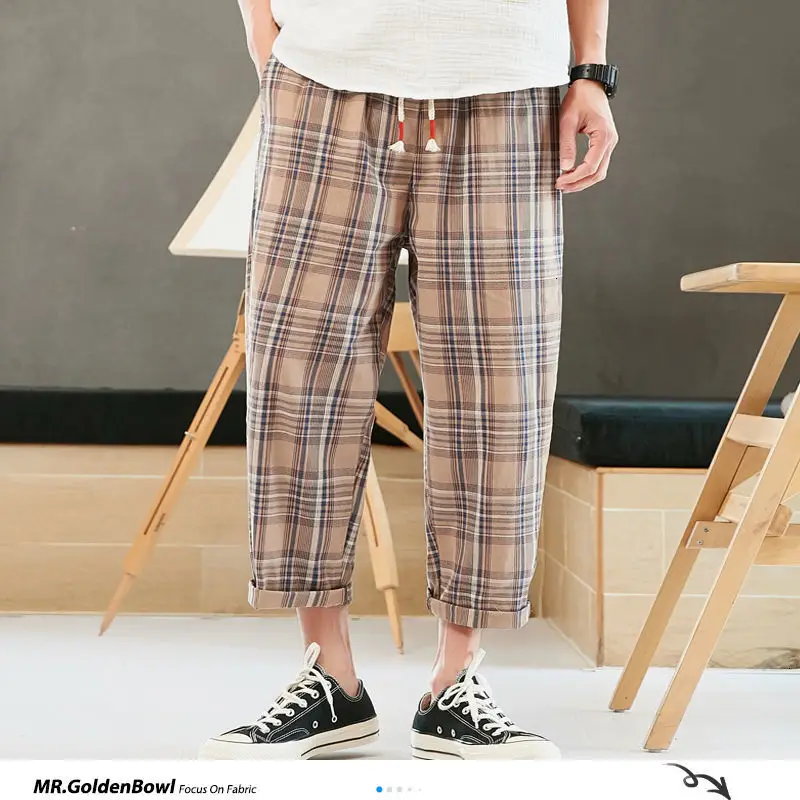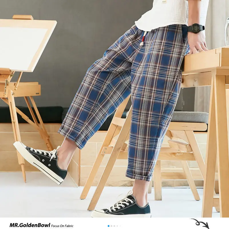 Privathinker мужские клетчатые уличные повседневные летние шаровары Mans 2020 винтажные свободные брюки до щиколотки мужские брюки Harajuku 5XL