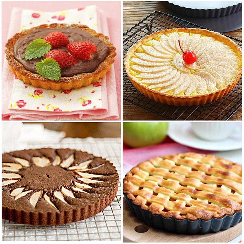 Антипригарная форма для рисования, формы для пирога, пиццы, торта, круглые формы для выпечки, съемное дно, рифленая, сверхпрочная сковорода для выпечки