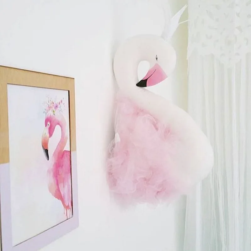 Розовый Лебедь Настенный декор для детской комнаты мягкие игрушечные Лебеди куклы для девочек голова животного настенное крепление для детской комнаты подарок на день ребенка