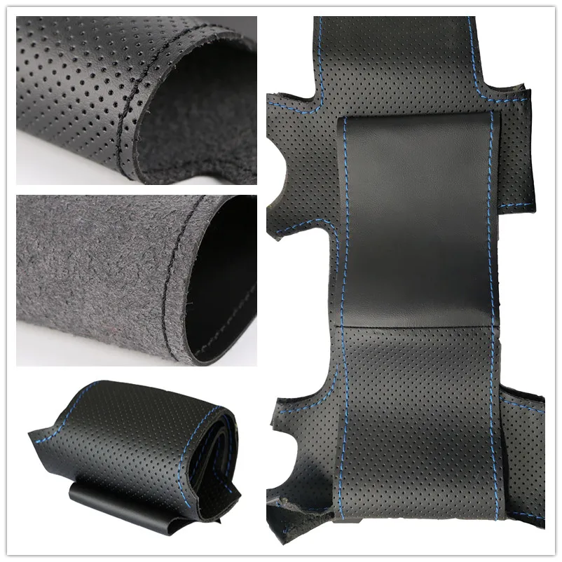Ручной работы из искусственной кожи DIY черный чехол рулевого колес...
