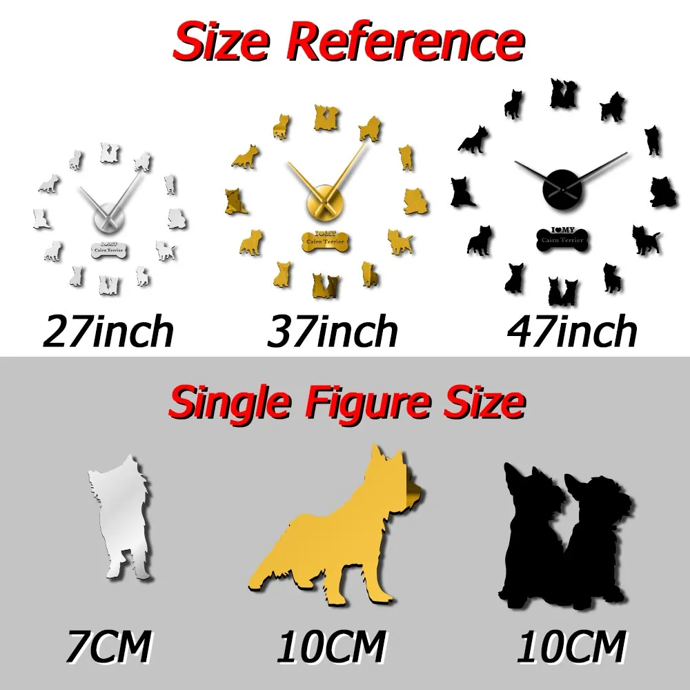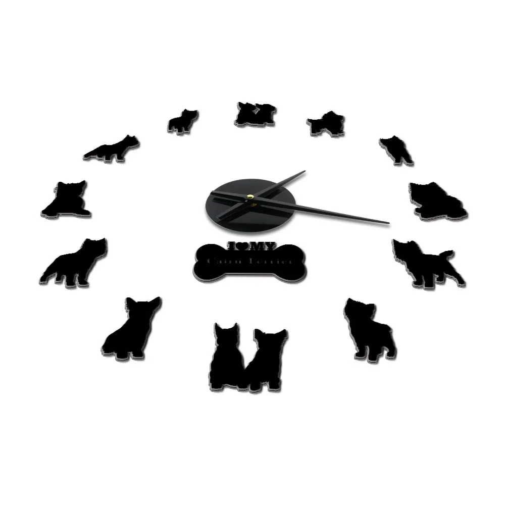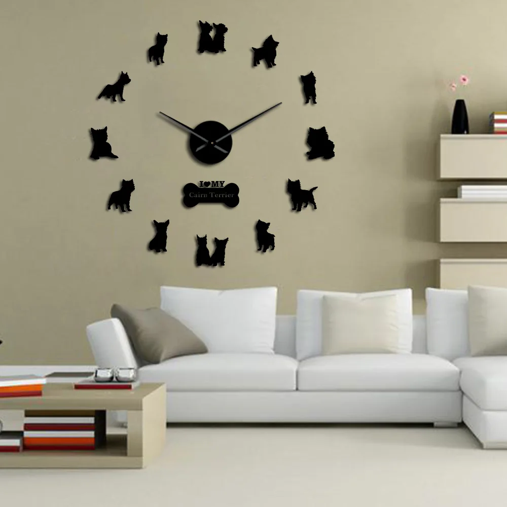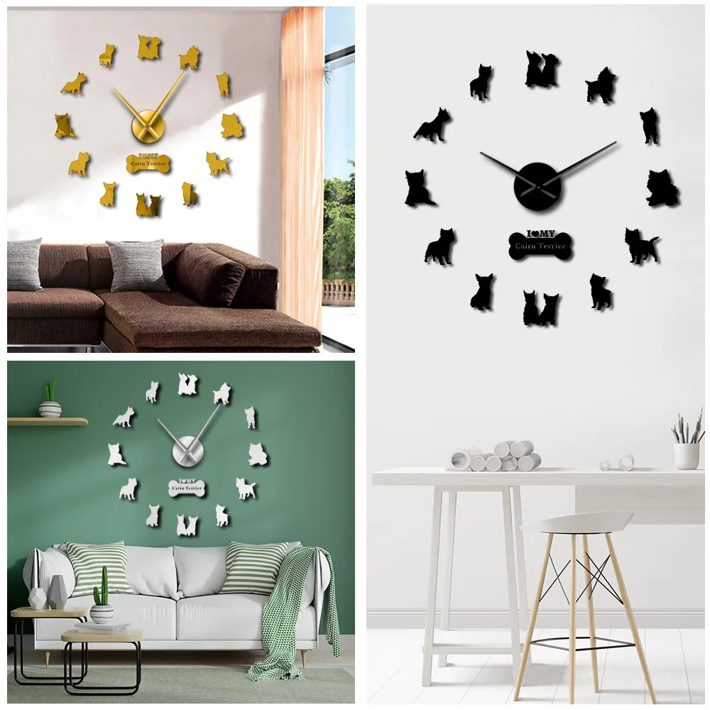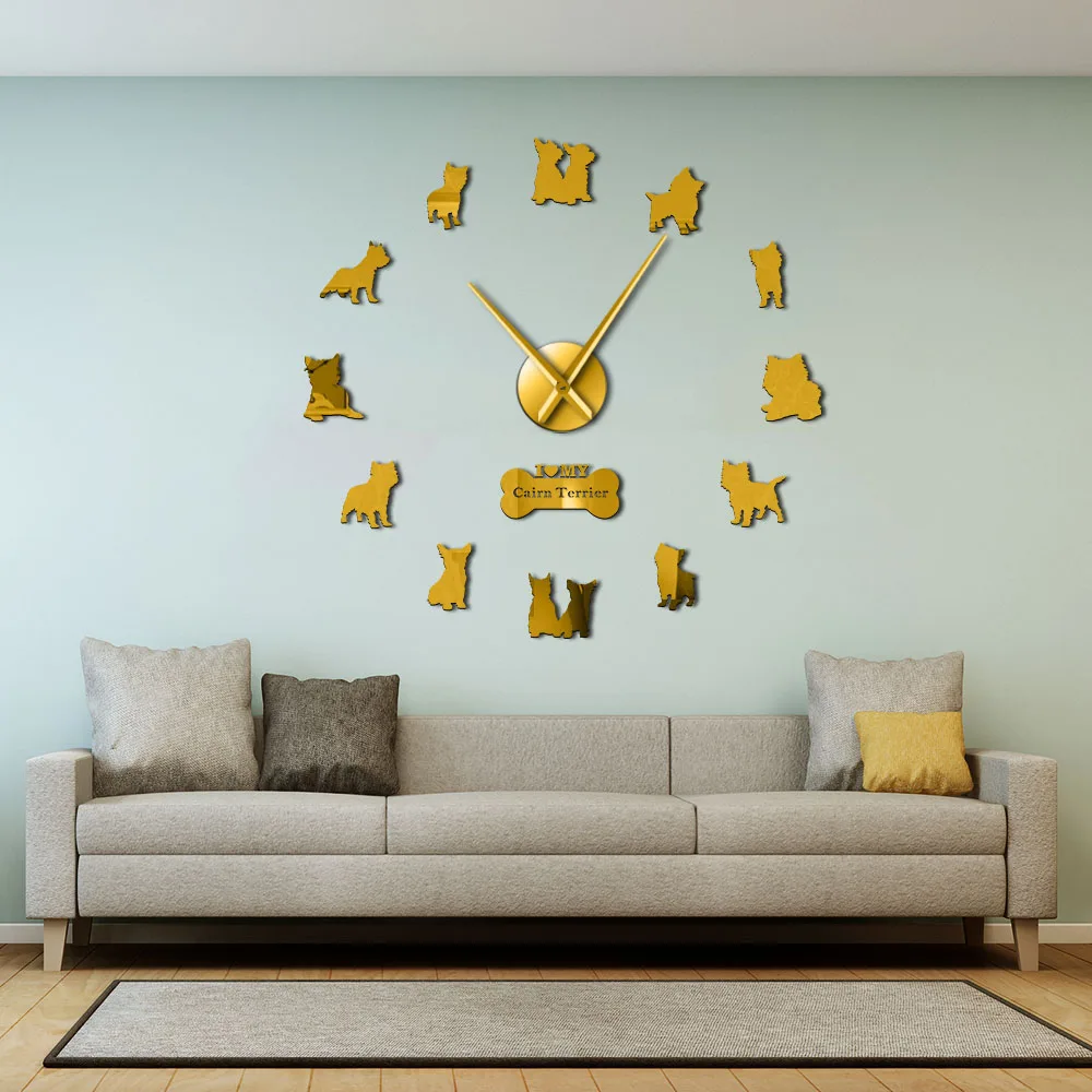 Настенные часы сделай сам с зеркальным эффектом, маленькая собака-терьер, животное, щенок, питомец, красная, силуэт, настенные художественные наклейки