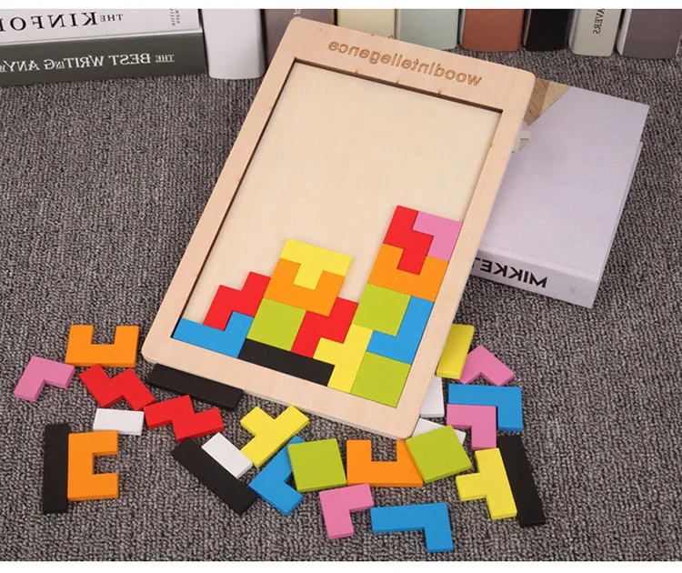 Деревянный тетрис танграмма, интеллектуальный пазл, Детская развивающая головоломка, игра, игрушка для детей