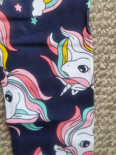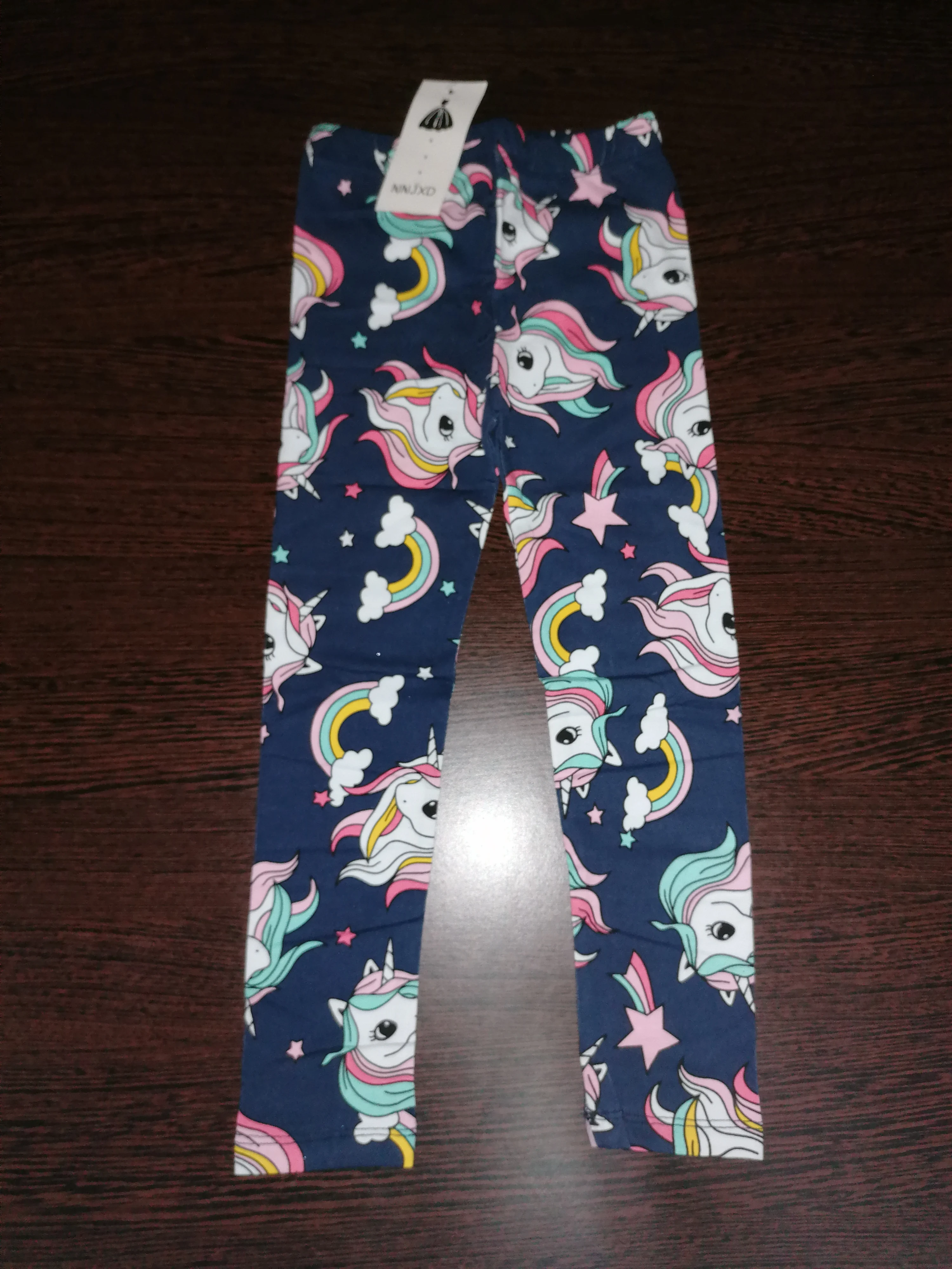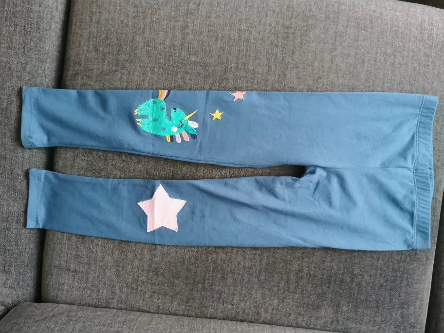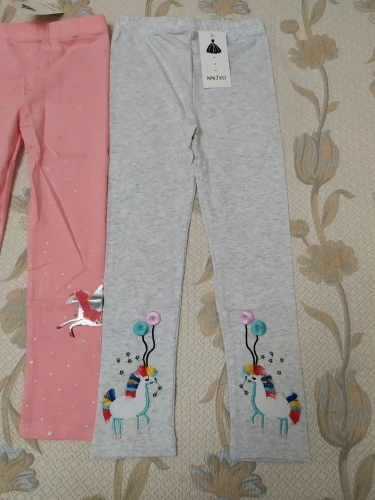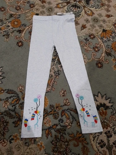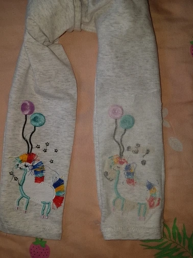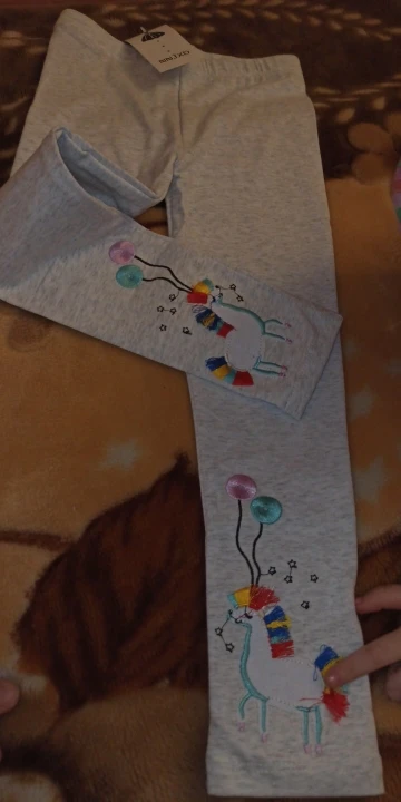 Леггинсы очень понравились, лошадка и хвост сделаны прям аппликацией, а не нарисованы. Но прогадали с размером, взяли на 5 лет 5т, коротковаты....