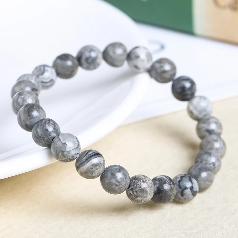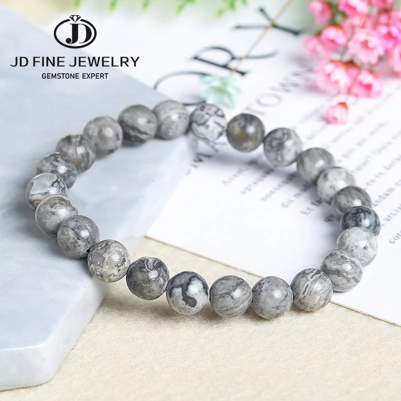 JD круглые бусины из натурального камня, серый камень Пикассо, браслет, сделай сам, материал, ювелирные изделия для мужчин и женщин
