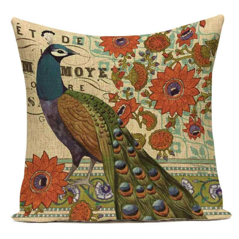 Полиэстер, винтажный стиль, милые животные, птица, павлинье перо, диванная подушка, наволочка для автомобиля, гостиной, наволочка