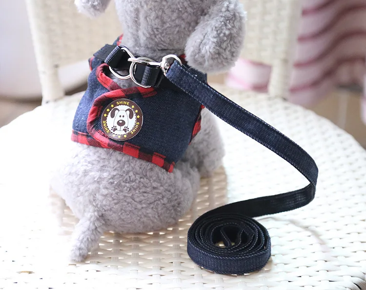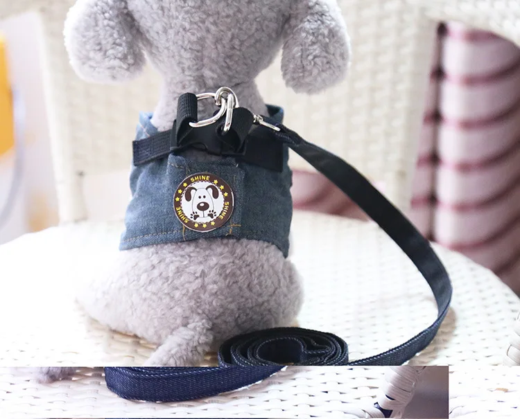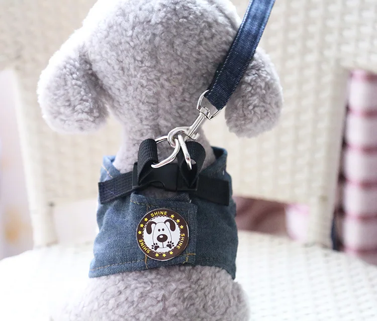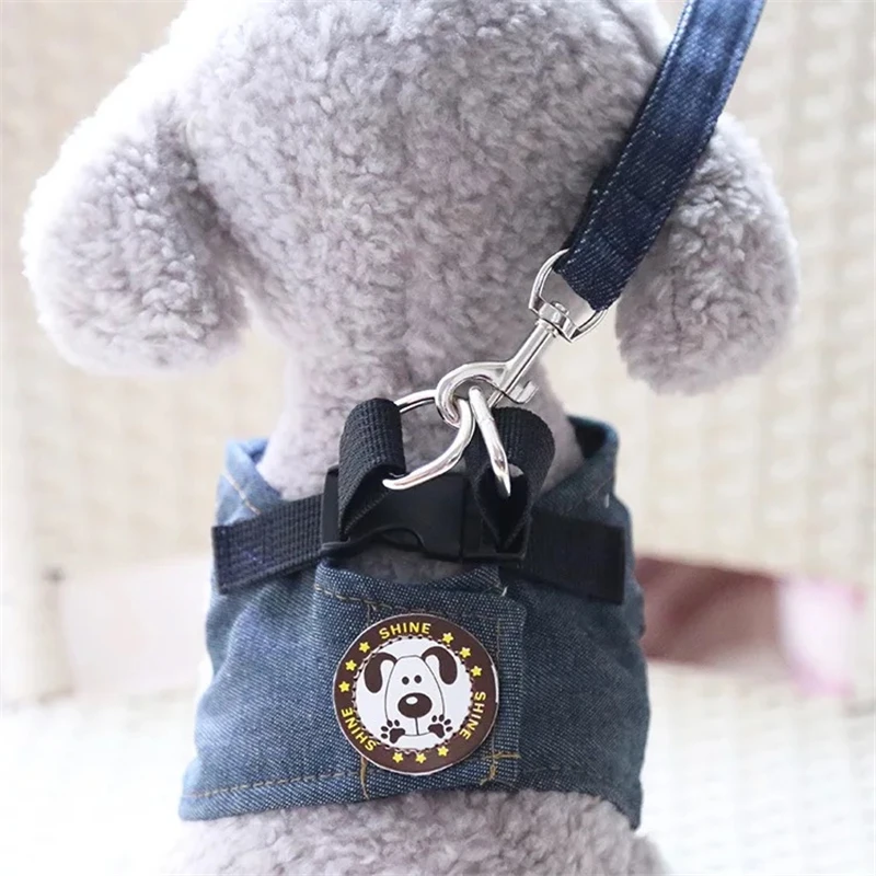 Поводок для мопса, нагрудный ремень, джинсовый жилет, шлейка для чихуахуа
