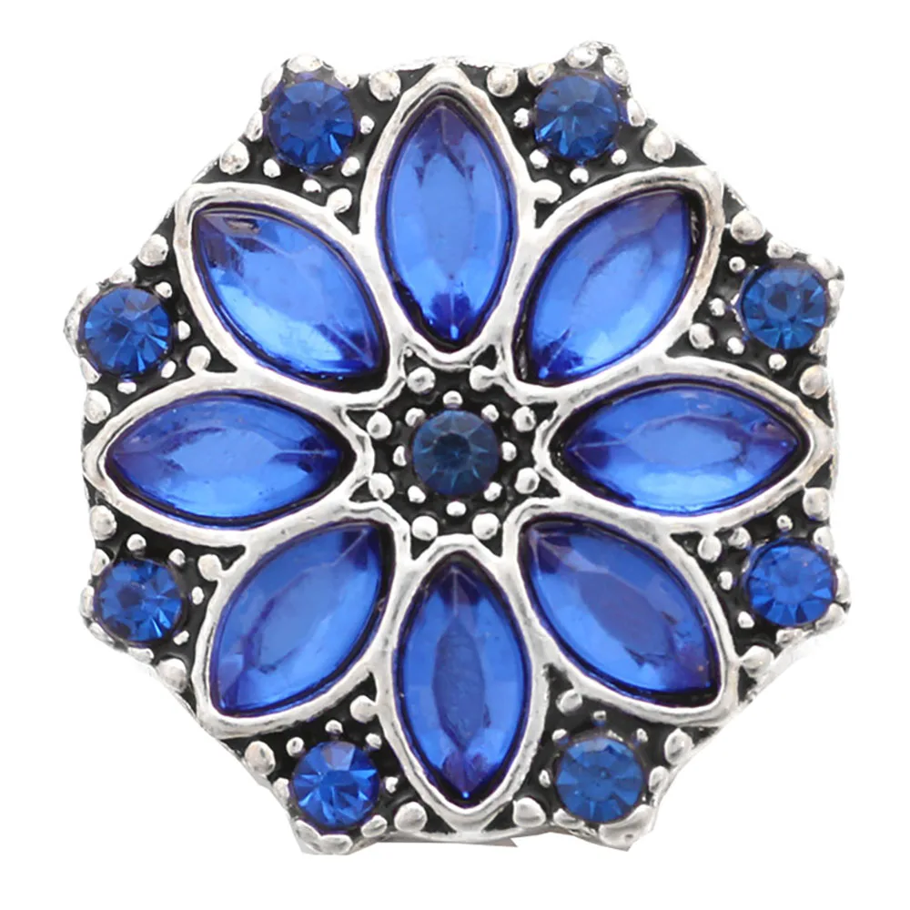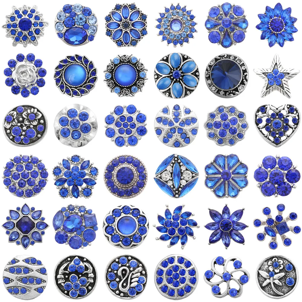 5 шт.лот новые ювелирные изделия 18 мм металлические кнопки ювелирные изделия цветок горный хрусталь Синяя кнопка подходит 18 мм кнопки браслеты ювелирные изделия