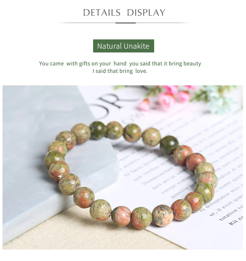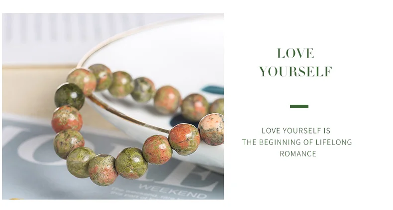 Браслет женский из натурального унакита, яшмы, кварцевых бусин