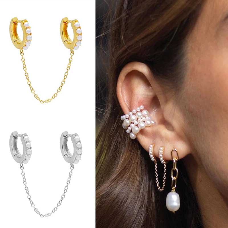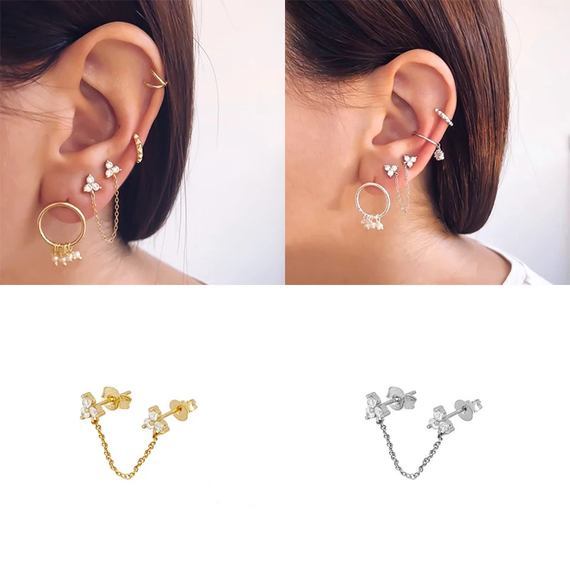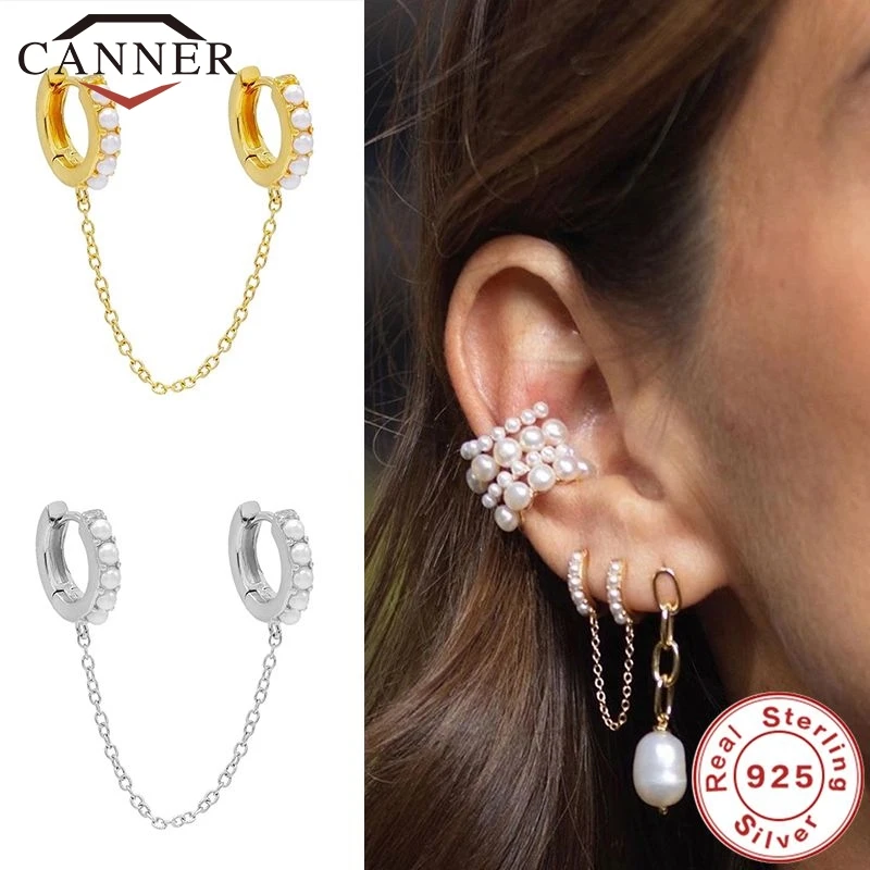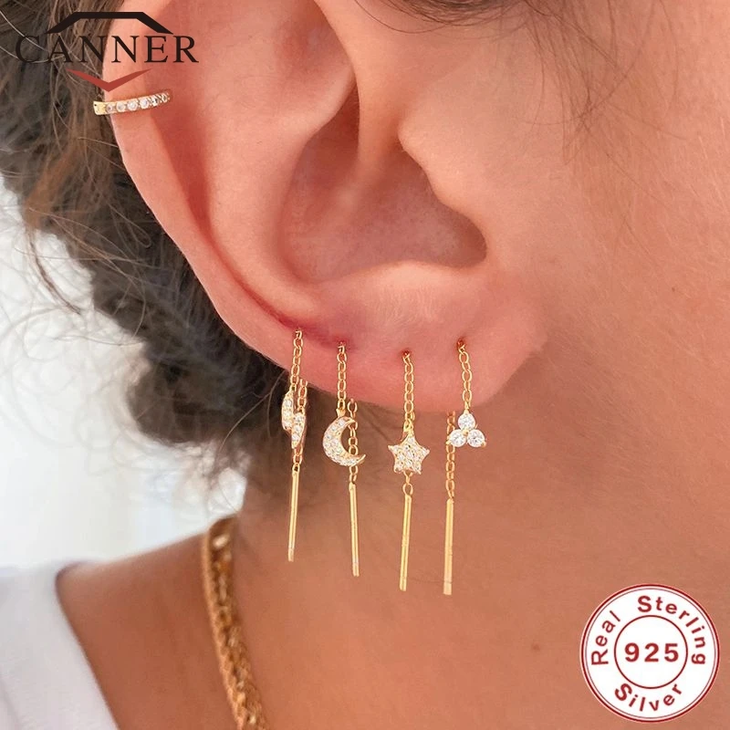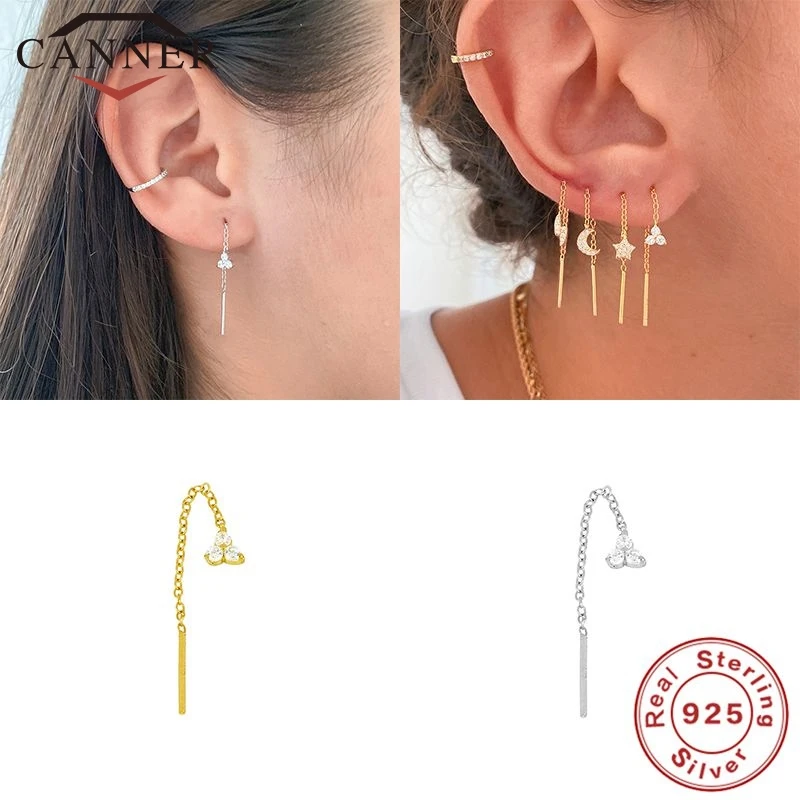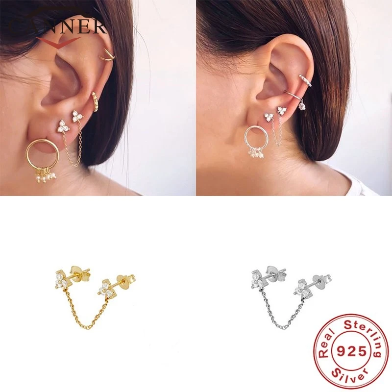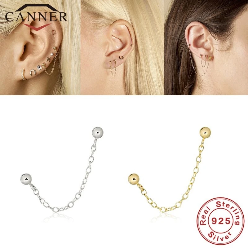 Женские серебряные сережки-гвоздики CANNER, сережки с цепочкой из настоящего серебра 925 пробы