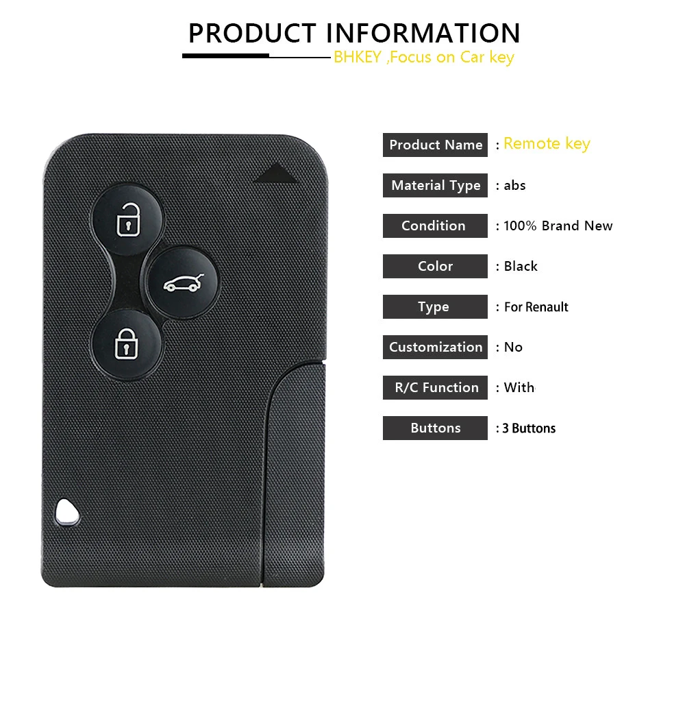 BHKEY для Renault Key 433 МГц, Автомобильный ключ для Renault Megane II Scenic II Grand Scenic 2003-2008, 3 кнопки, дистанционный ключ, печатная плата, ультразвуковой