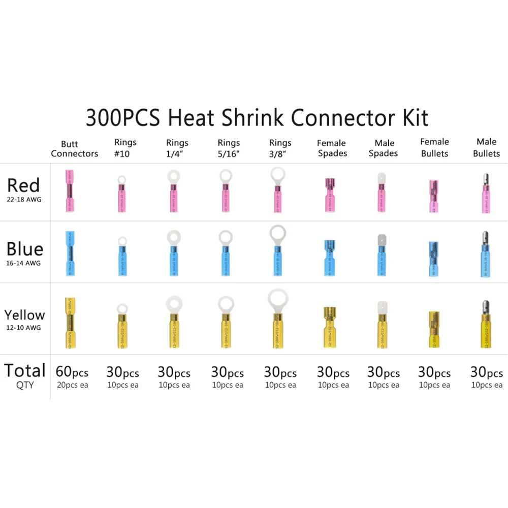 300 шт. соединитель провода термоусадочные лопаты соединители пули водонепроницаемые соединительные провода для припоя комплект электрических терминалов