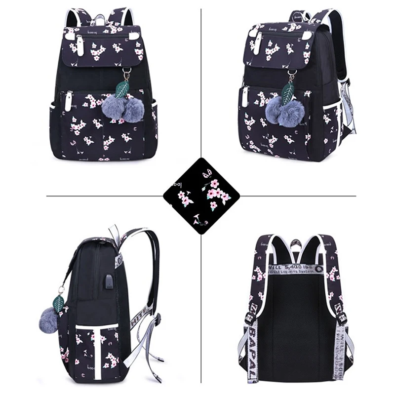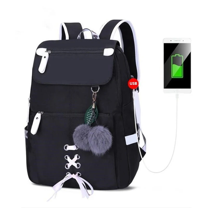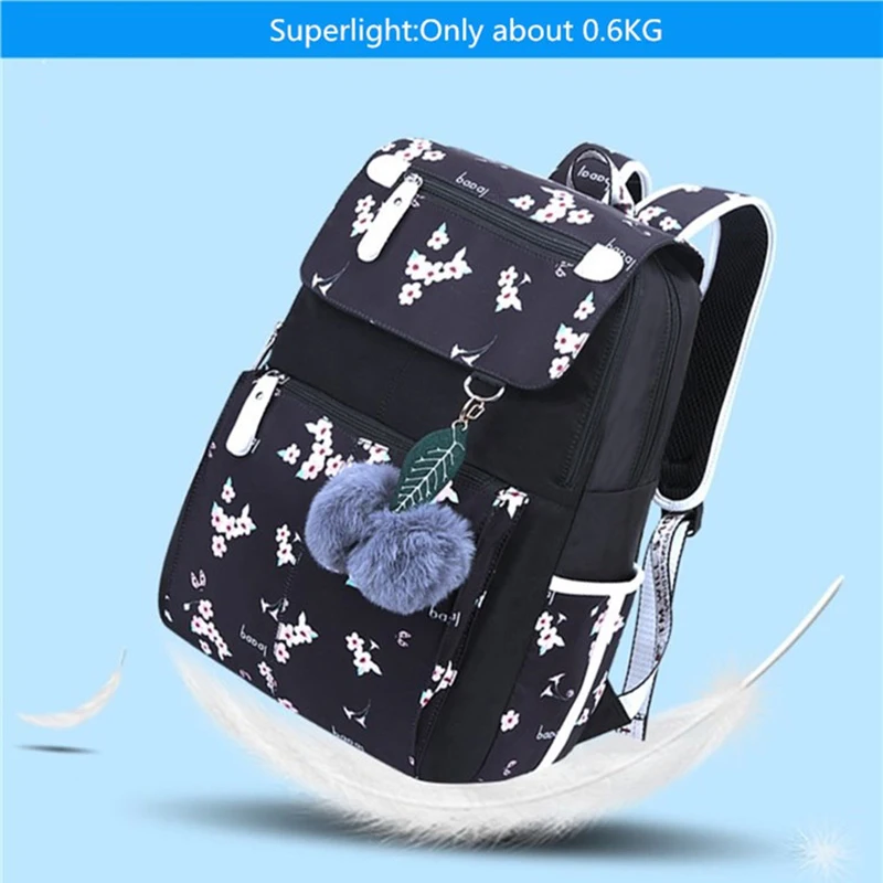 Рюкзак для девочек, школьный, с меховым помпоном, водонепроницаемый, вместительный, для подростков