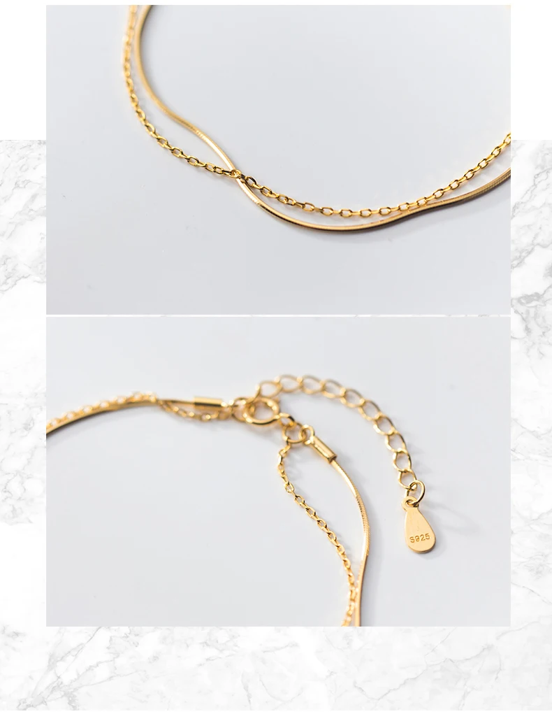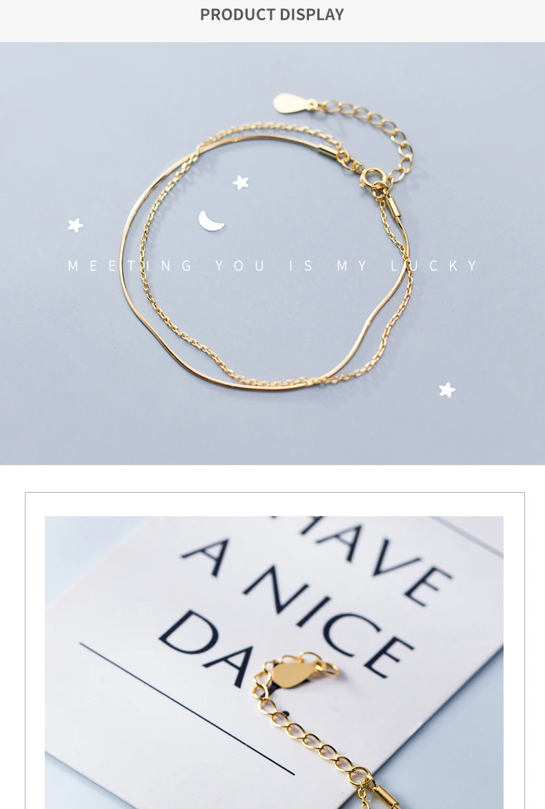 Женский двухслойный браслет-цепочка Modian, изящная бижутерия из стерлингового серебра 925 пробы золотого цвета