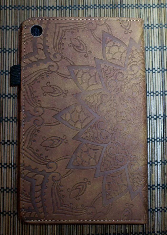 Шикарный чехол! на ощупь очень приятный, будто кожа + Алькантара, объемный рисунок. внутри удобные держатели карт и т.д. Продавец положил ручку-стилус в бонус. дошел за 1,5 недели. Все на высшем уровне :) Брал маме на замену старого, очень довольна..прям реально классный. Берите этот, остальные все хлам! Было два других, этот лучший!