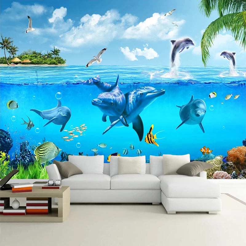 Водонепроницаемые 3D-обои с изображением большого морского дельфина, большой подводный мир, настенная живопись для детской комнаты, гостиной, спальни