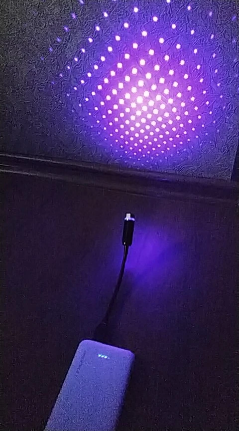Вещица занятная. При включенном состоянии вращая верхнюю часть стробоскопа можно изменять рисунок проекции. Ножка гнётся и после выбранного направления хорошо фиксируется. Эффект классный. В машине или дома на потолке словно звёздное небо. Цвет приятный и не напрягает глаза.