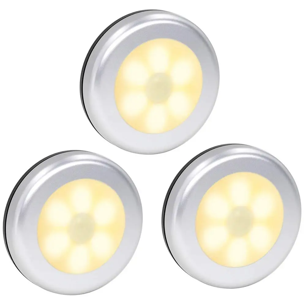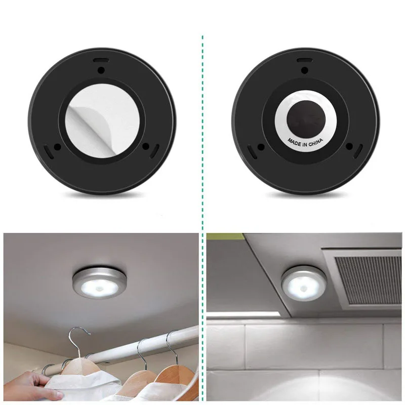 Светодиодный Ночной светильник с датчиком движения, беспроводной круглый светильник, шкаф, лестница, лампа, магнит, безопасная прихожая, ванная комната, спальня, кухонный шкаф, светильник s