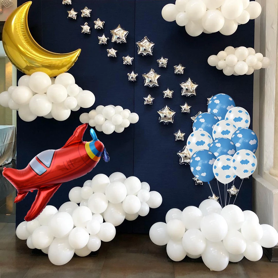 12-дюймовый воздушный шар с синими и белыми облаками и игрушечный самолет для мальчиков, баннер, украшение на день рождения и свадьбу, гавайская тема, Детская вечевечерние НКА на день рождения