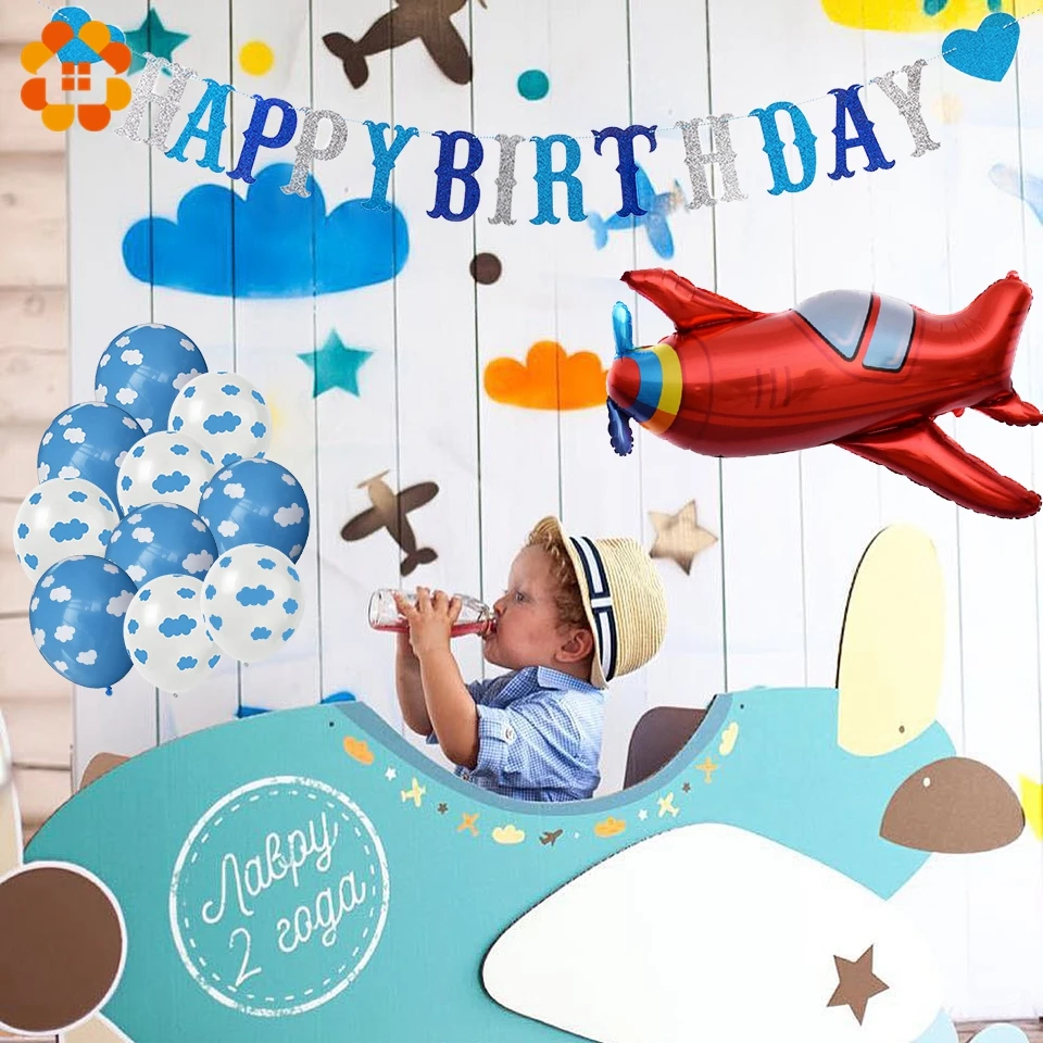12 дюймов синий белый облако шар и мальчик самолет игрушка баннер день рождения свадебное украшение Гавайская тема Дети День Рождения вечерние