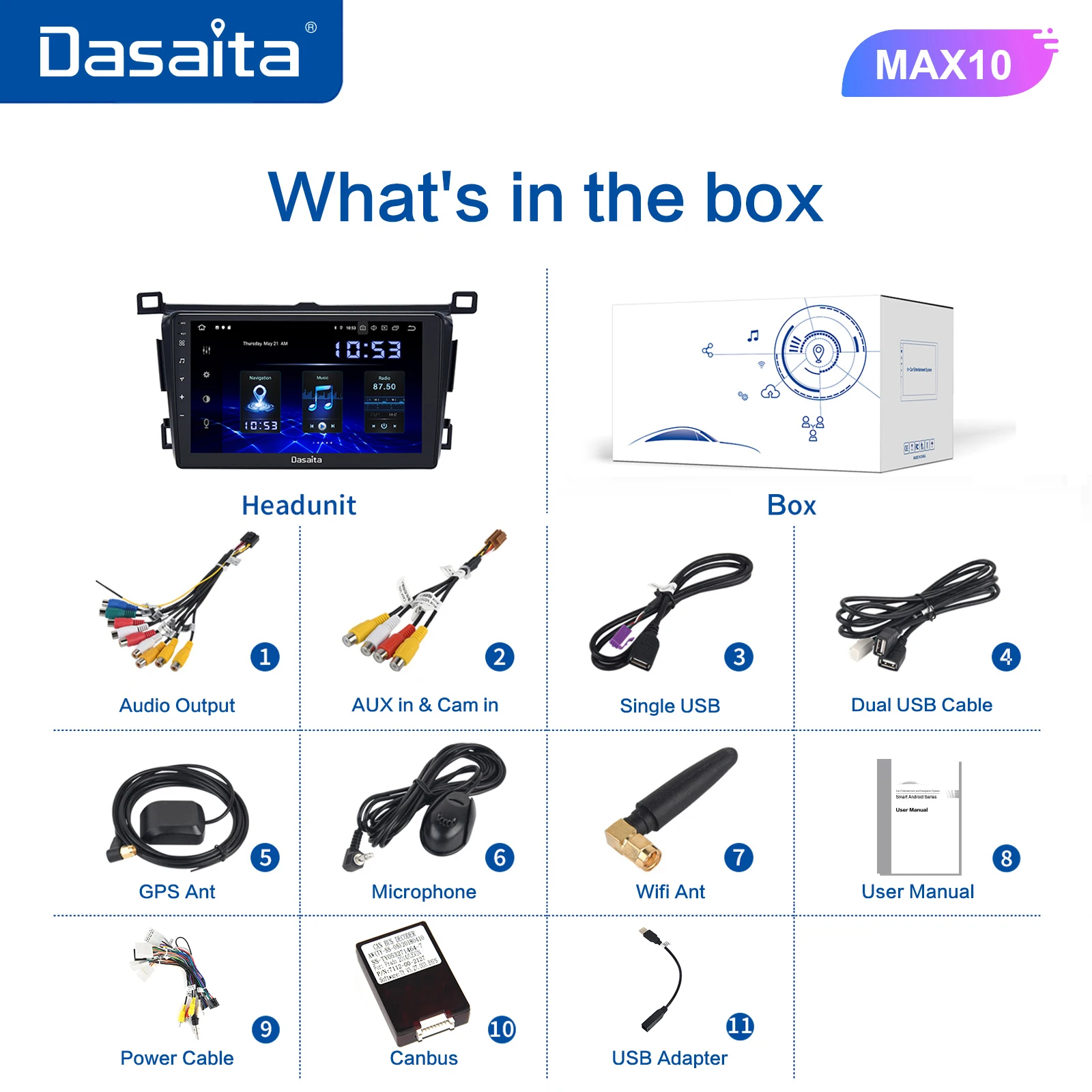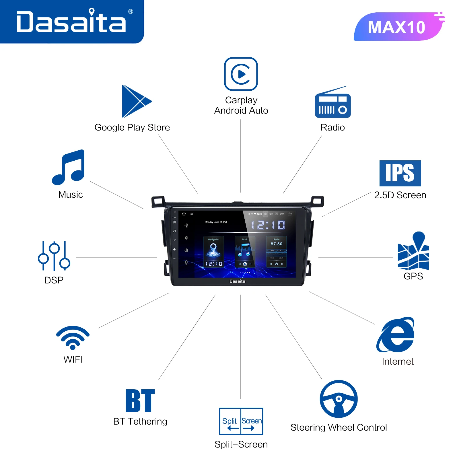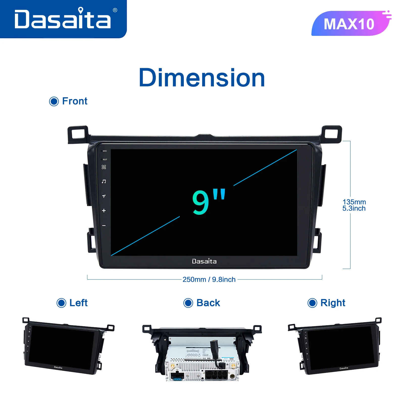 Автомобильная магнитола Dasaita, мультимедийный стерео-приемник на Android 10, с 9 "экраном, Wi-Fi, для Toyota RAV4, 2012, 2013, 2014, 2015, 2016, 2017, Типоразмер 1 Din