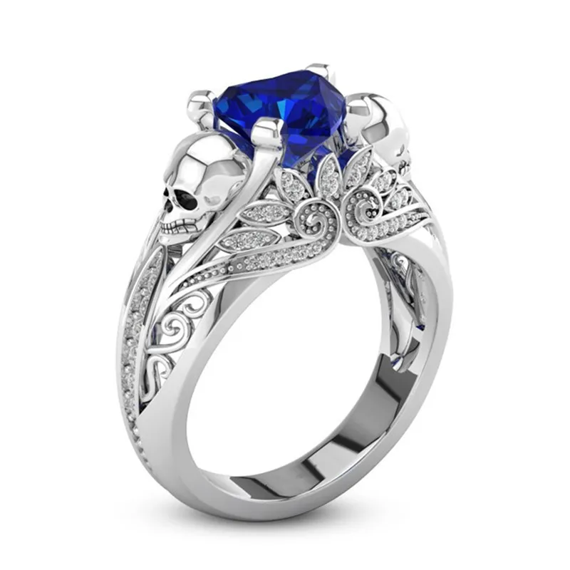 Женское Обручальное кольцо в форме сердца, с кристаллами, черепом, в стиле панк, серебряного цвета, ювелирное изделие в стиле бохо, подарки