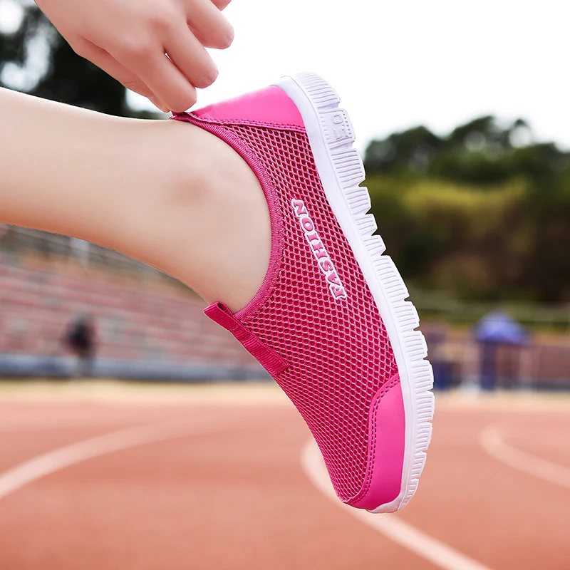 Унисекс летние дышащие беговые кроссовки без шнуровки женские уличн...