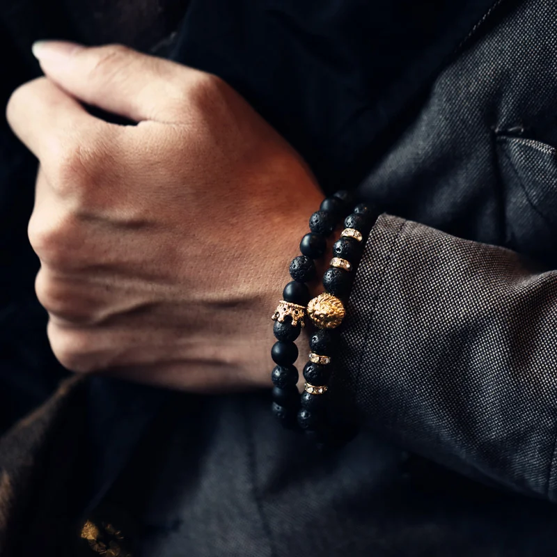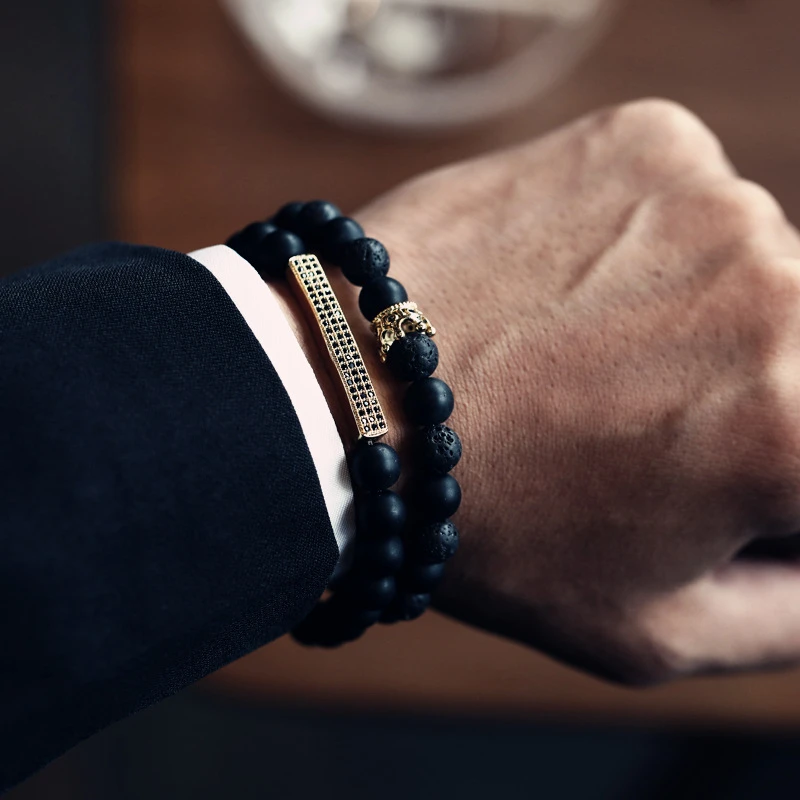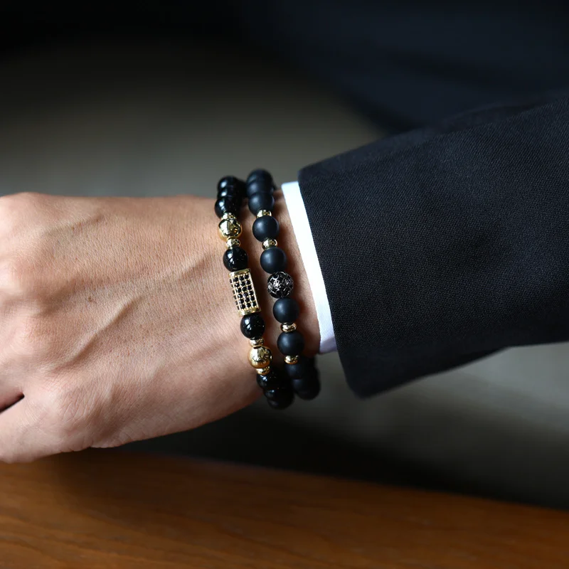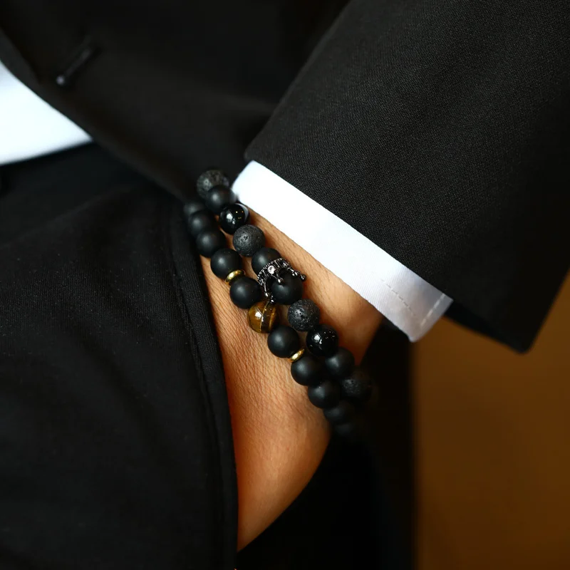 2 шт.компл. Корона мужской браслет новая модная подвеска в виде трубочки ручной работы 8 мм камень браслет из бисера для мужчин, ювелирное изделие, подарок Pulsera Hombre