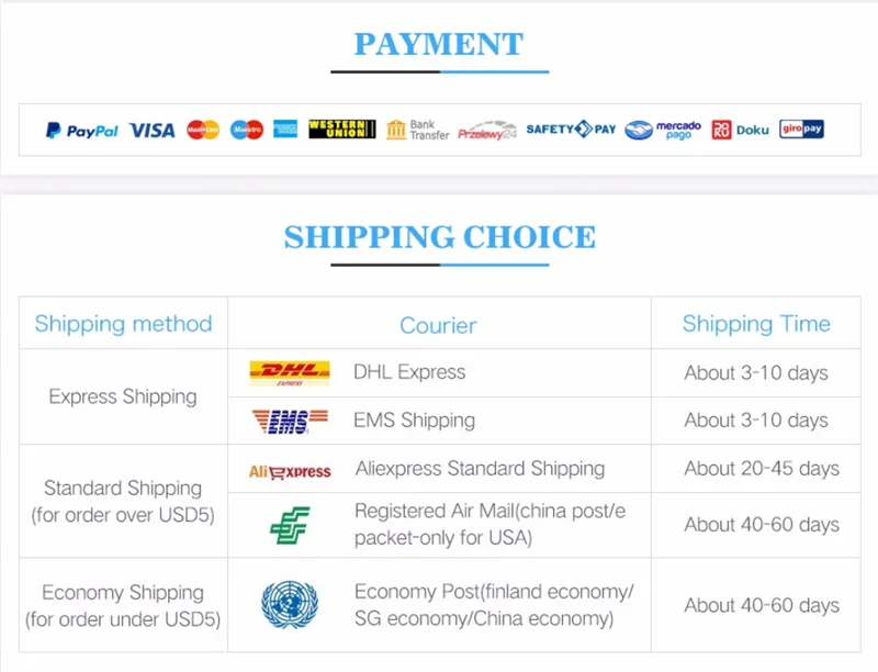 3. Если вы хотите выбрать экспресс-доставку, пожалуйста, свяжитесь с нами, чтобы изменить стоимость доставки. (Например, EMS, DHL, fedex, TNT, SF)