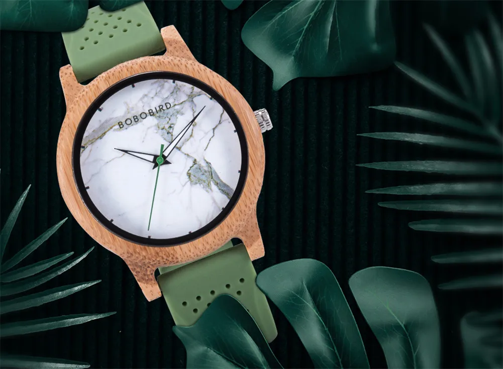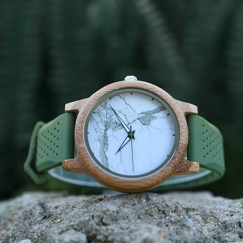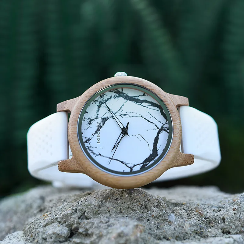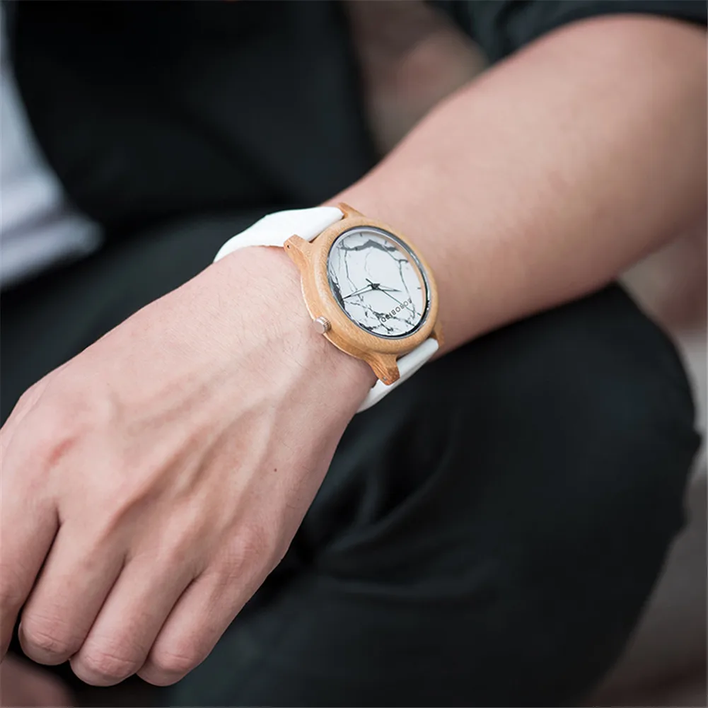 Часы наручные BOBO BIRD мужскиеженские, деревянные кварцевые с мраморным буквенным силиконовым ремешком, в коробке, подарок для женщин