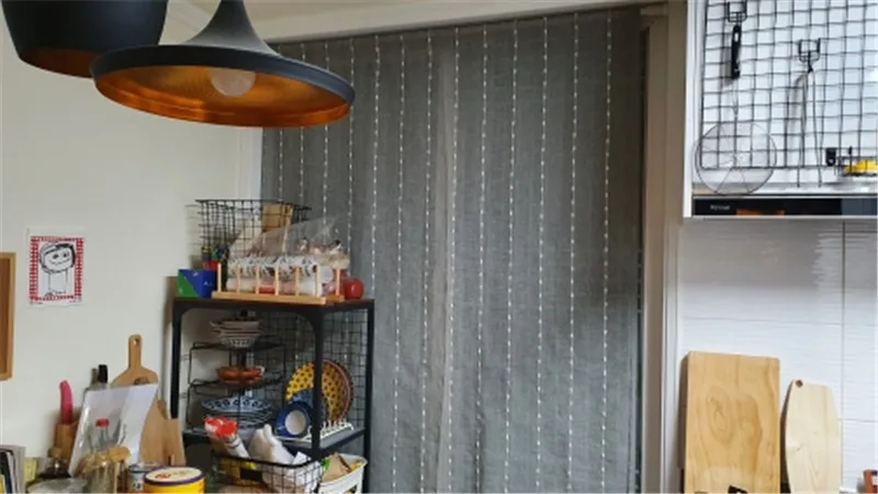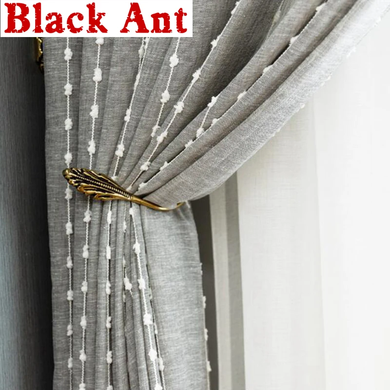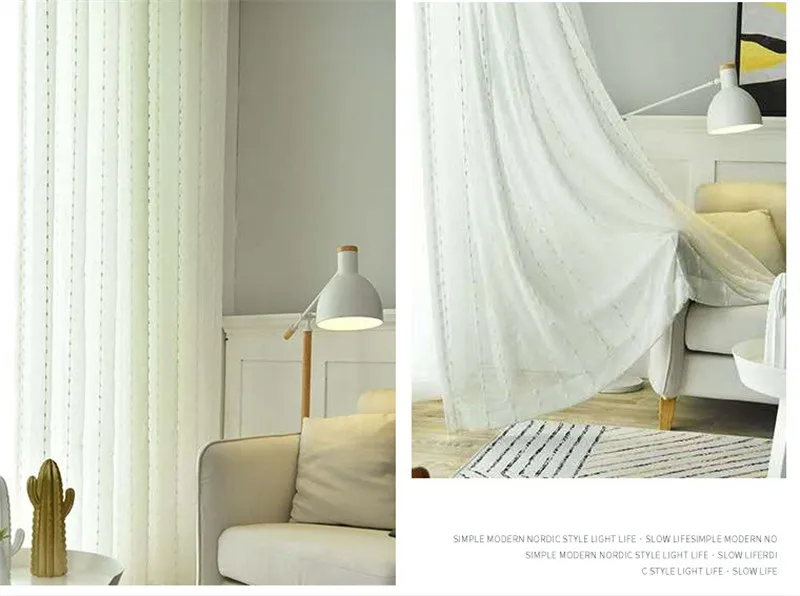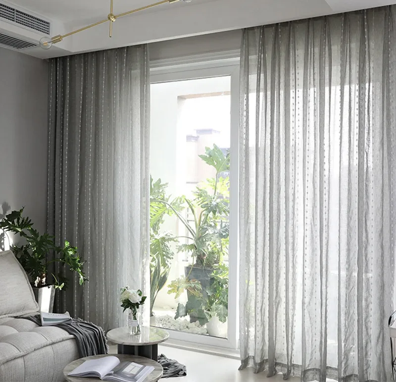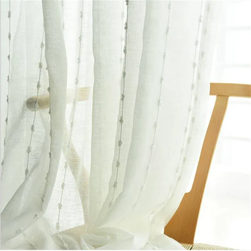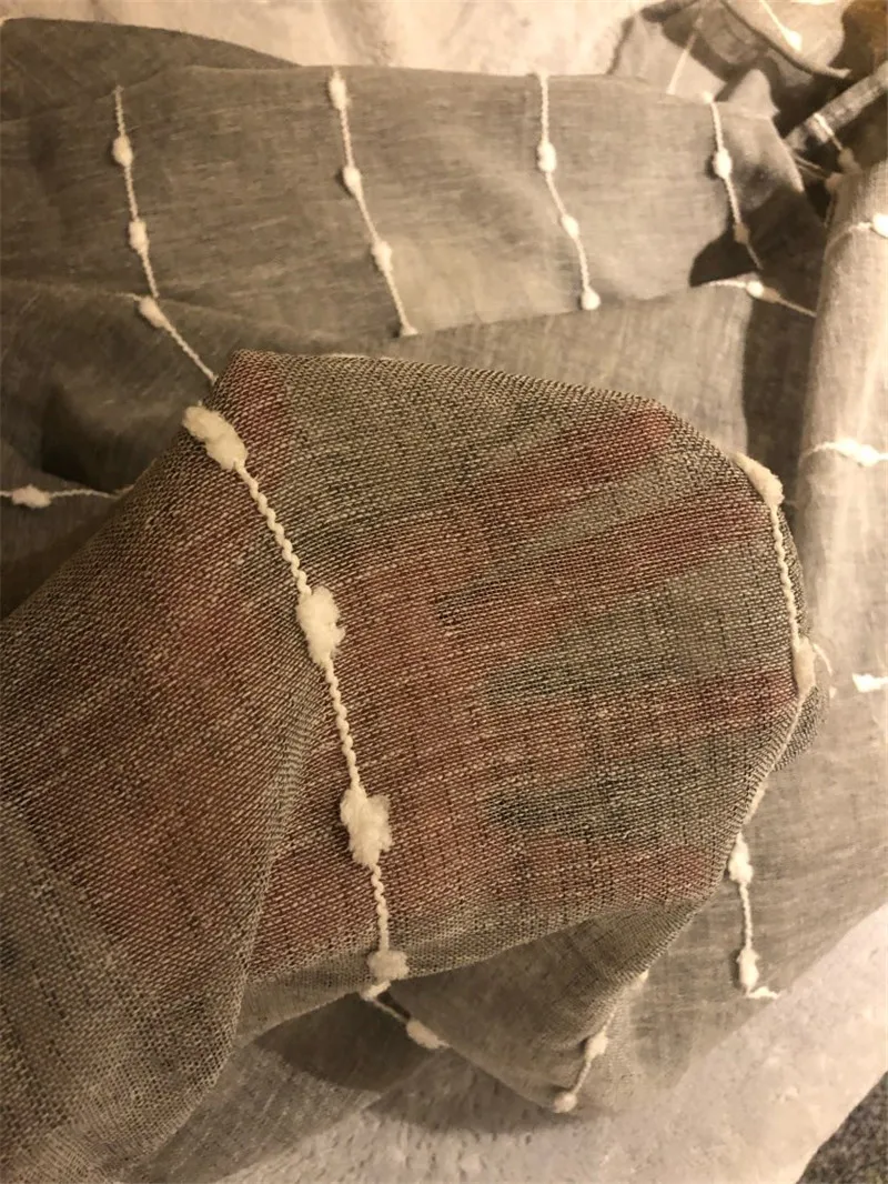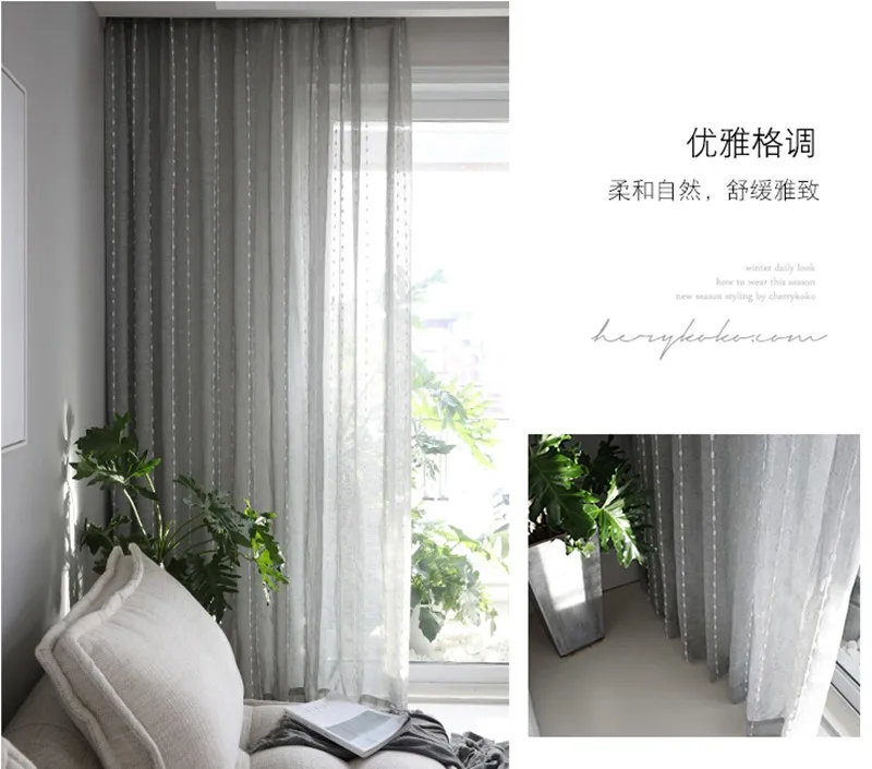 Тюлевая занавеска в японском стиле, серая, белая, хлопковая, с вертикальными полосками, с вышивкой, для гостиной, спальни, балкона, 057 #3