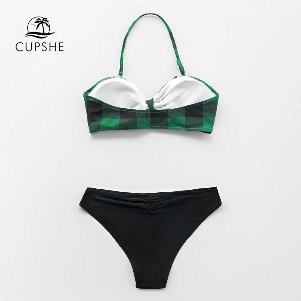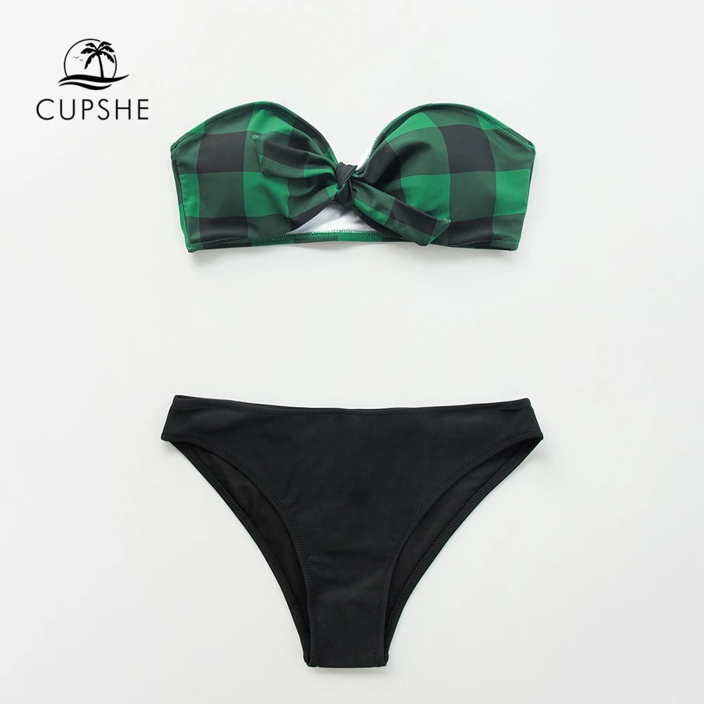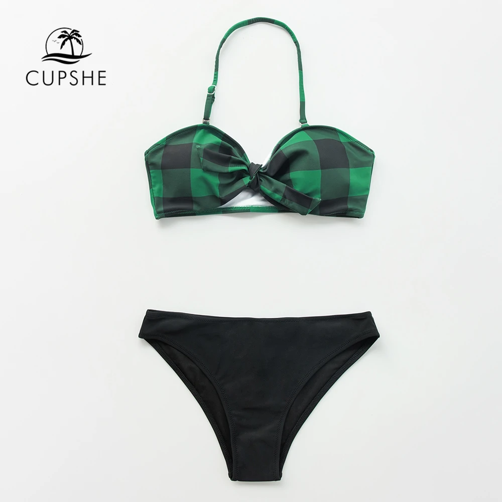 Сексуальные красные купальники CUPSHE в клетку, купальник бандо с з...