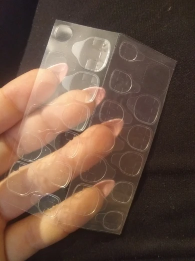 Ну, это... Некоторые накладные ногти, я не знаю, написано ли это в описании или нет, но я был удивлен, что пришли две меры, которые я ценю за мои мини-пальцы. То, что я купил, прибыло. Спасибо. Спасибо.