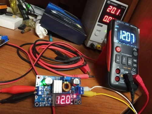 Всё работает. Качество хорошее, минус дисплей красного цвета днё видно очень плохо, кнопка позволяет переключаться между режимами входного и исходящего напряжения, индикатор включения зелёный, плавная регулировка потенциометра, лучше заменить на крутилку. В остальном претензий нет