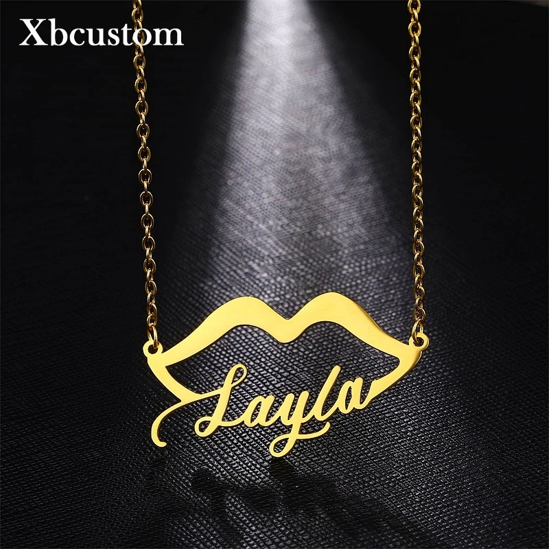 Индивидуальная подвеска, ожерелья с именем губ для женщин, золотая цепочка из нержавеющей стали, индивидуальное ожерелье, бижутерия в стиле хип-хоп