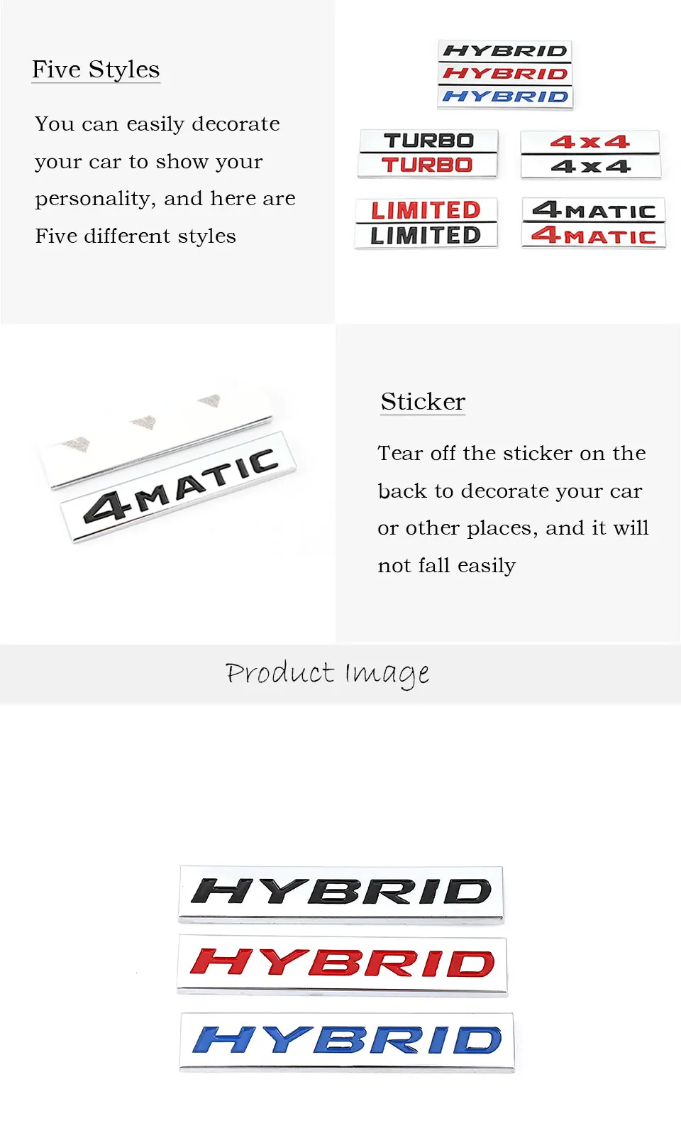 Описание: 100% новый и высокое качество. Украсьте свой автомобиль персонализированными автомобильными наклейками. Наклейка долговечна для нагрева и солнечного света, поэтому она будет длиться годами. Легко установить, просто очистить и наклеить. Они не повредят поверхность, на которой они были наклеены. Особенности: Тип: автомобильные наклейки Материал: металл Логотип: общество с ограниченной Turbo Гибридный 4X4 4 matic логотип Стикеры Посылка включает в себя: 1 шт. наклейки