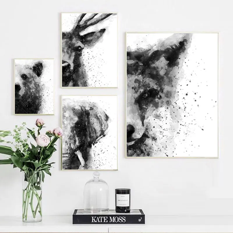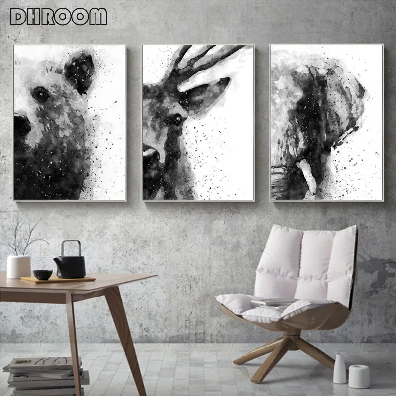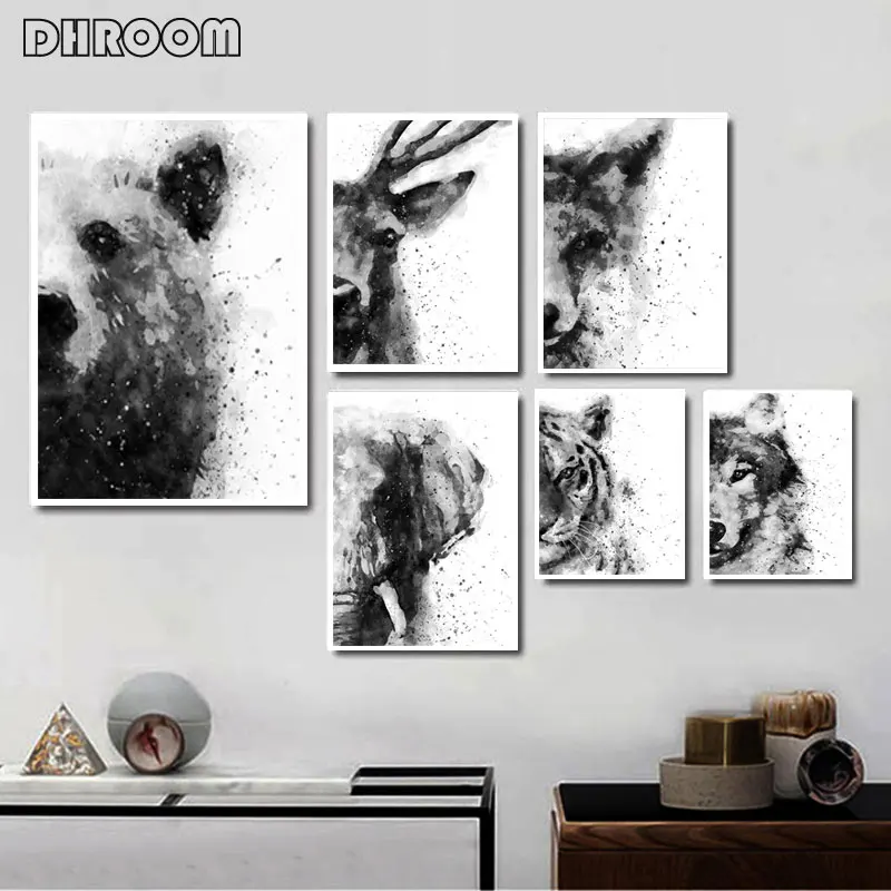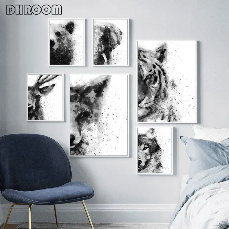 Абстрактные акварельные животные черно-белые постеры и принты Тигр лиса слон холст искусство живопись настенные художественные декоративные картины