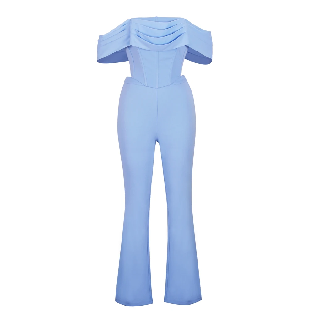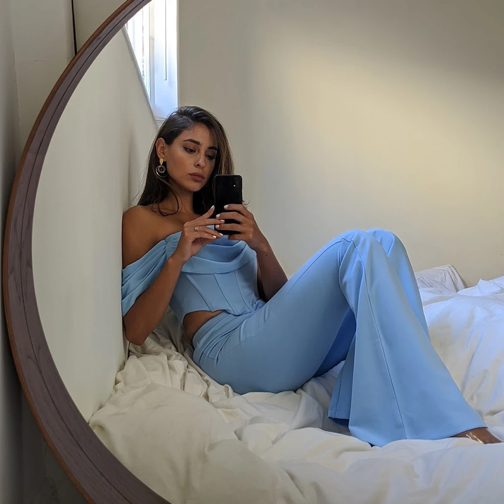 Олень Леди Женский комплект 2 шт. Лето 2020 синие облегающие Короткие топы высокая талия брюки длинные широкие брюки комплект Клубные Вечерние
