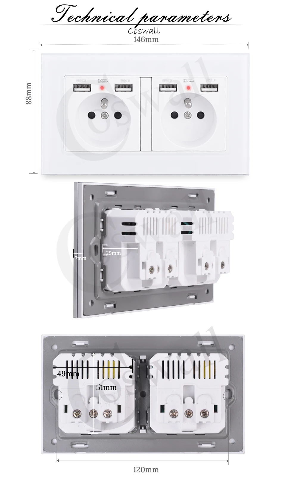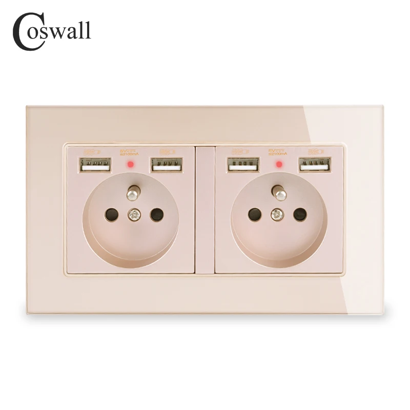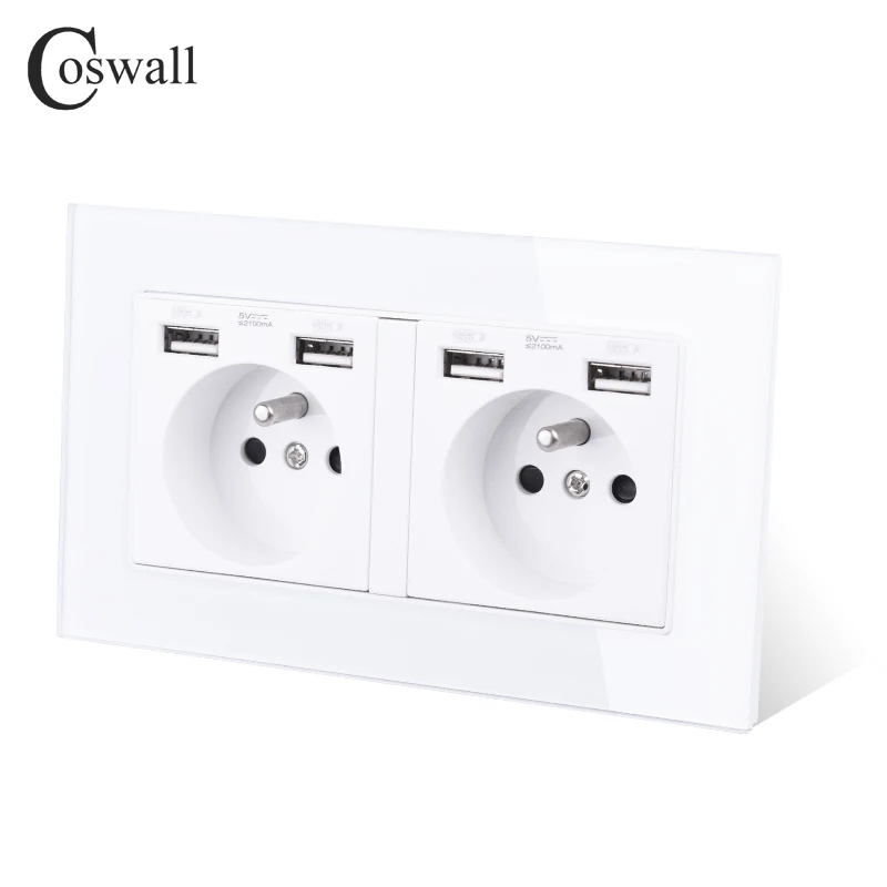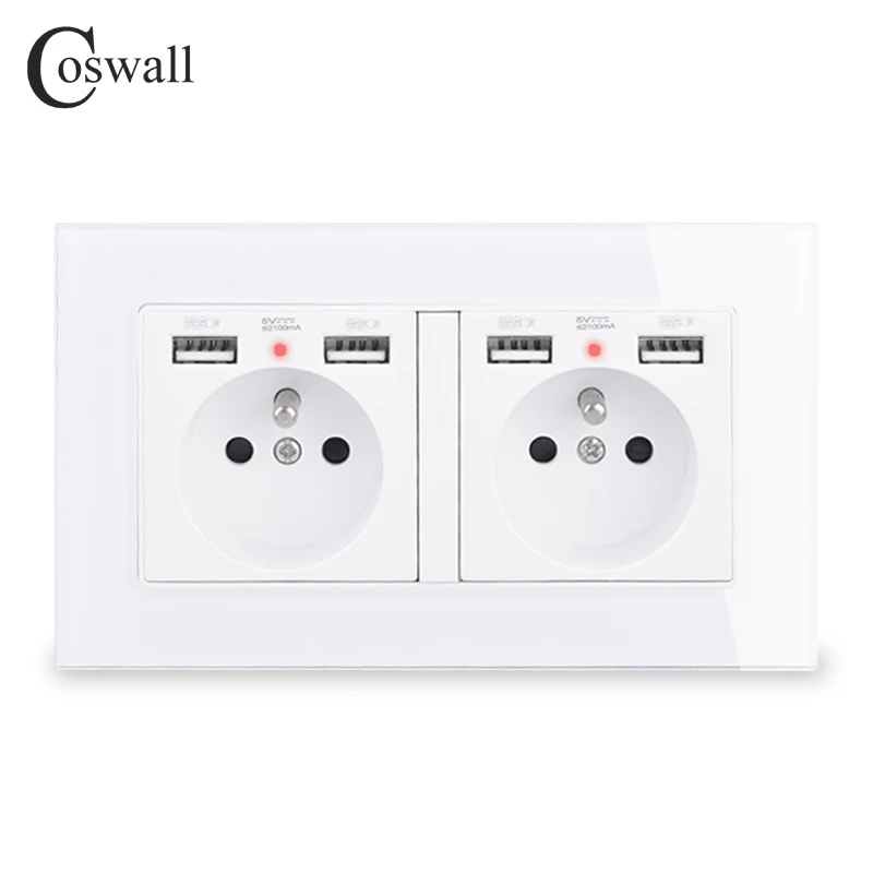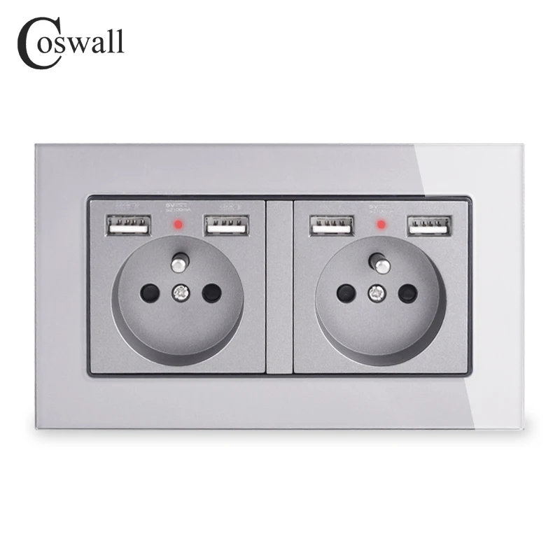 Настенная розетка стандарта ЕС COSWALL 2 Gang, Россия, Испания, с 4...