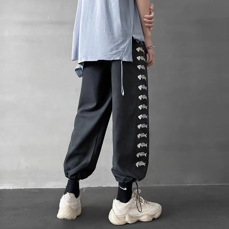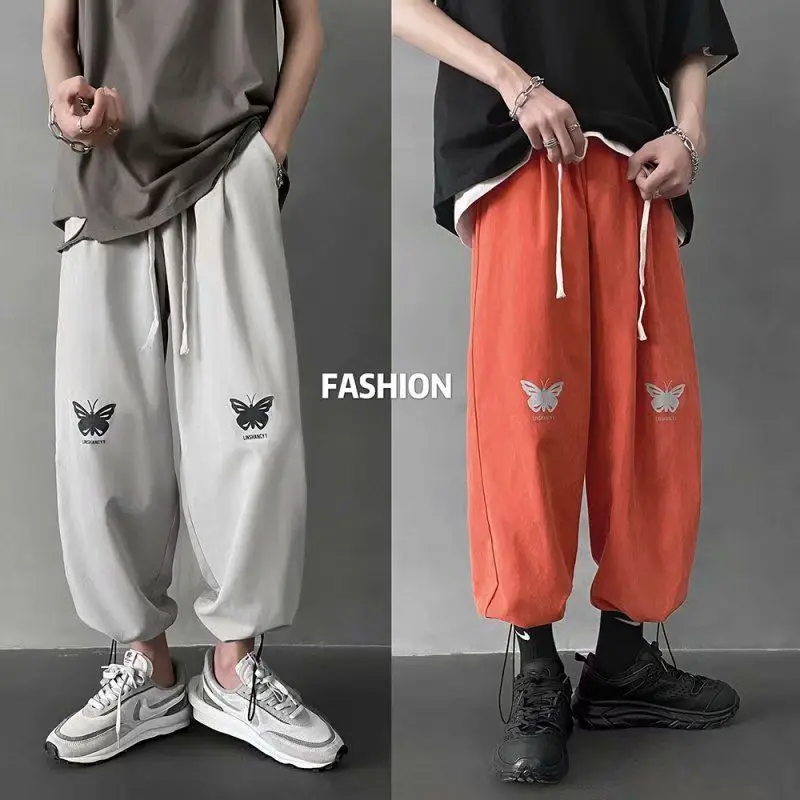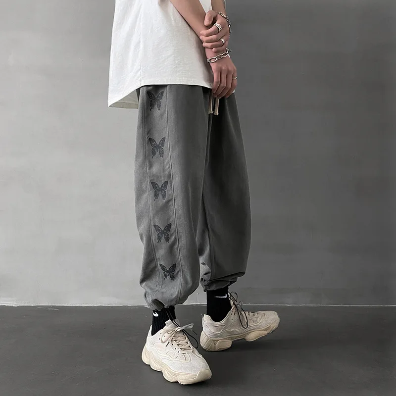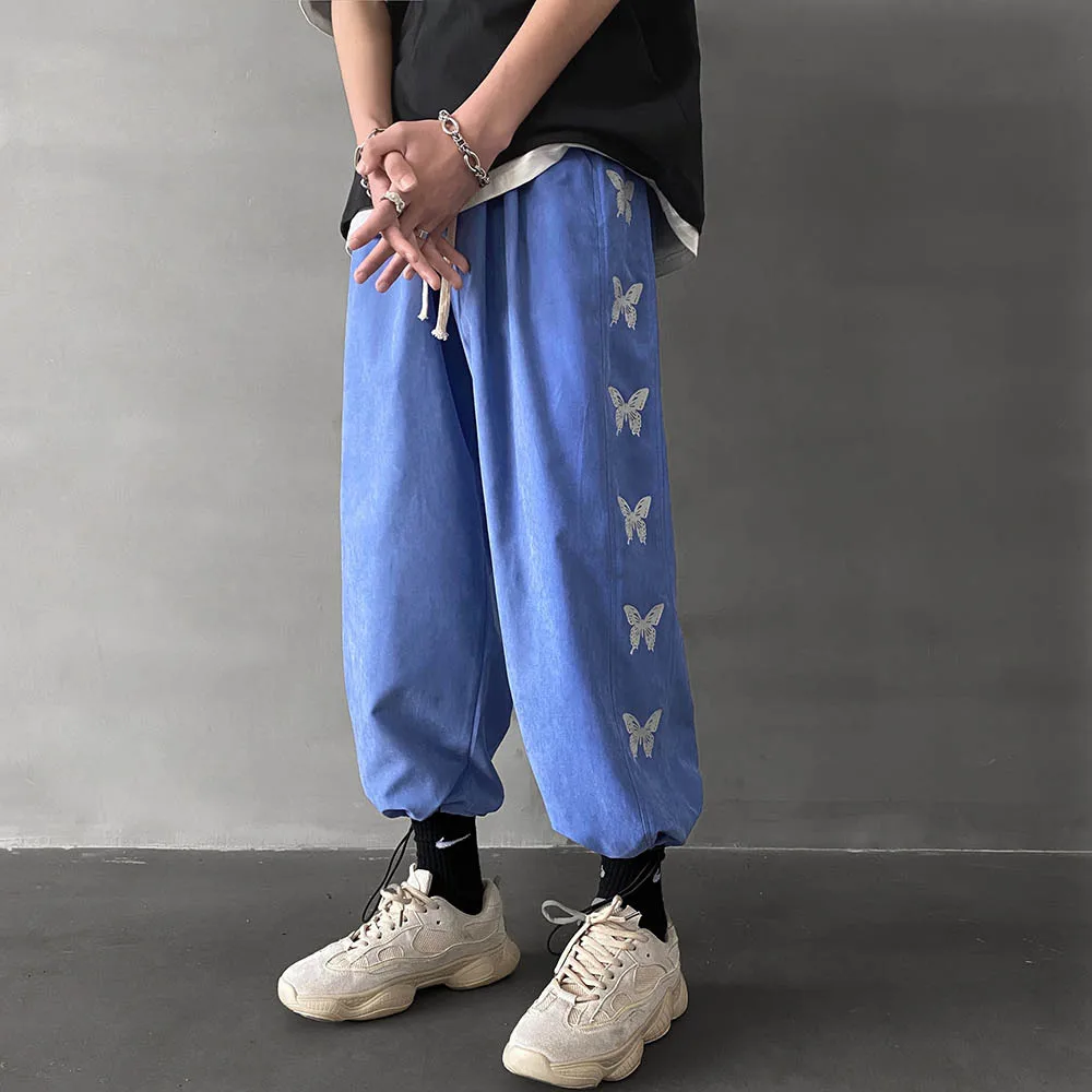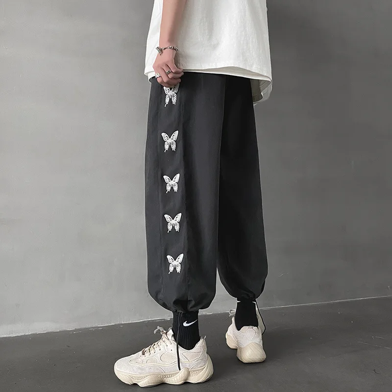 Брюки с эластичным поясом для мужчин и женщин, уличная одежда с завышенной талией, свободные прямые хлопковые милые штаны с принтом бабочек, в готическом стиле Харадзюку, в Корейском стиле