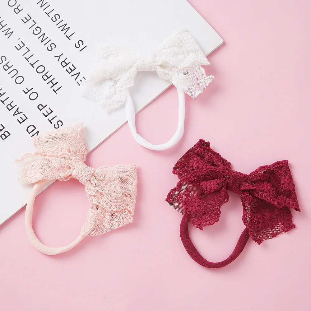 Повязка на голову для девочек, нейлоновая, эластичная, с бантом, Детская резинка для волос