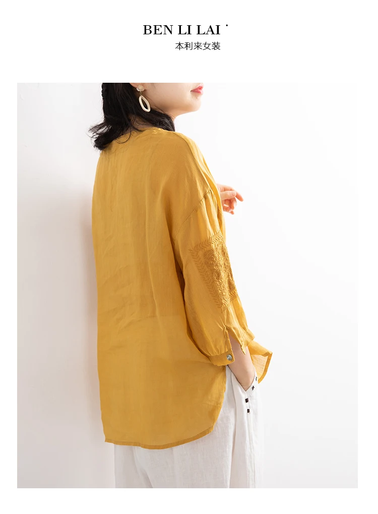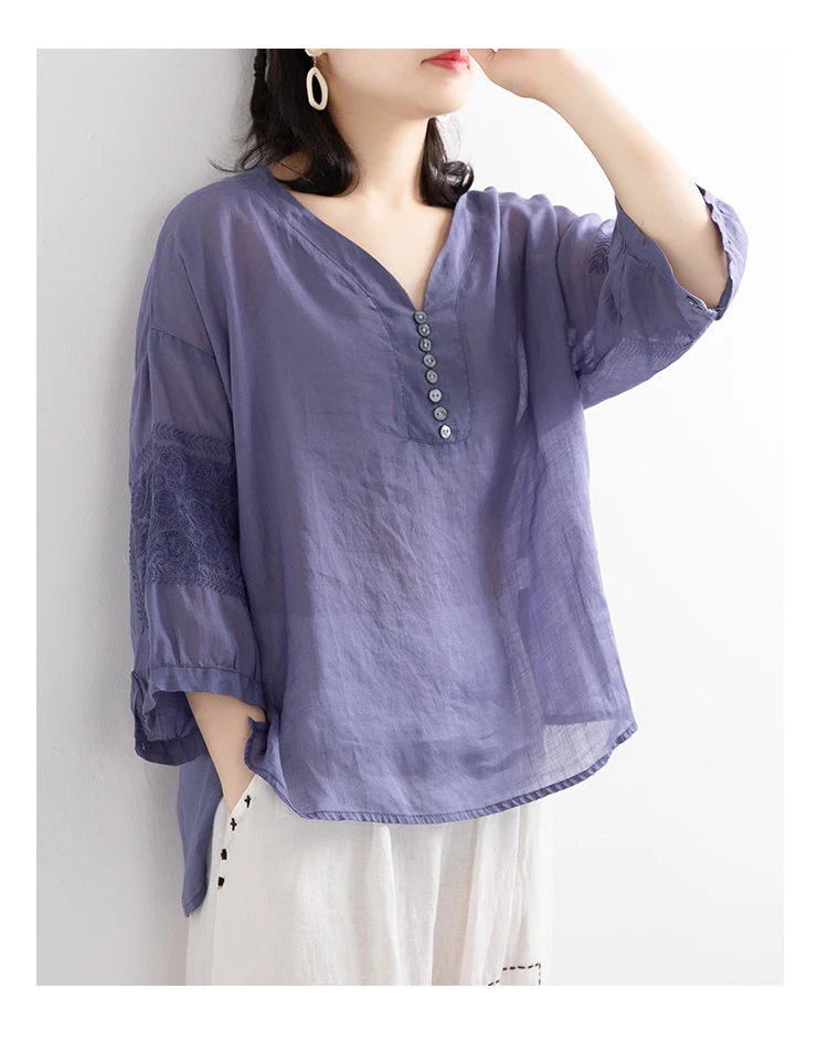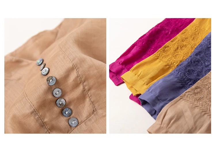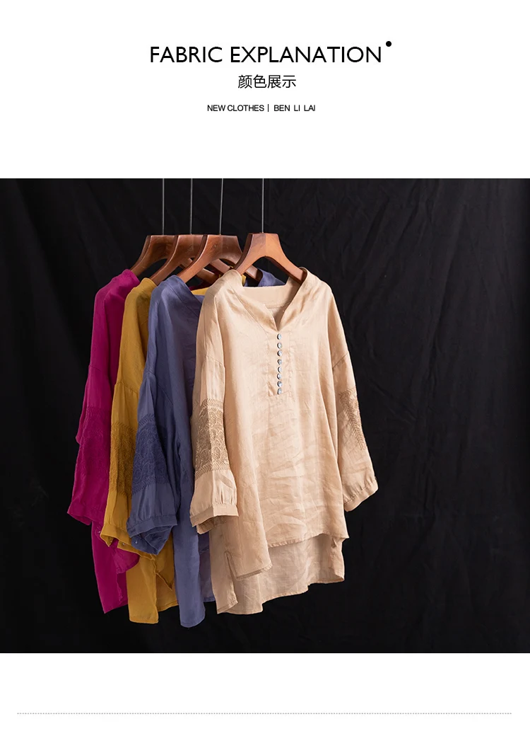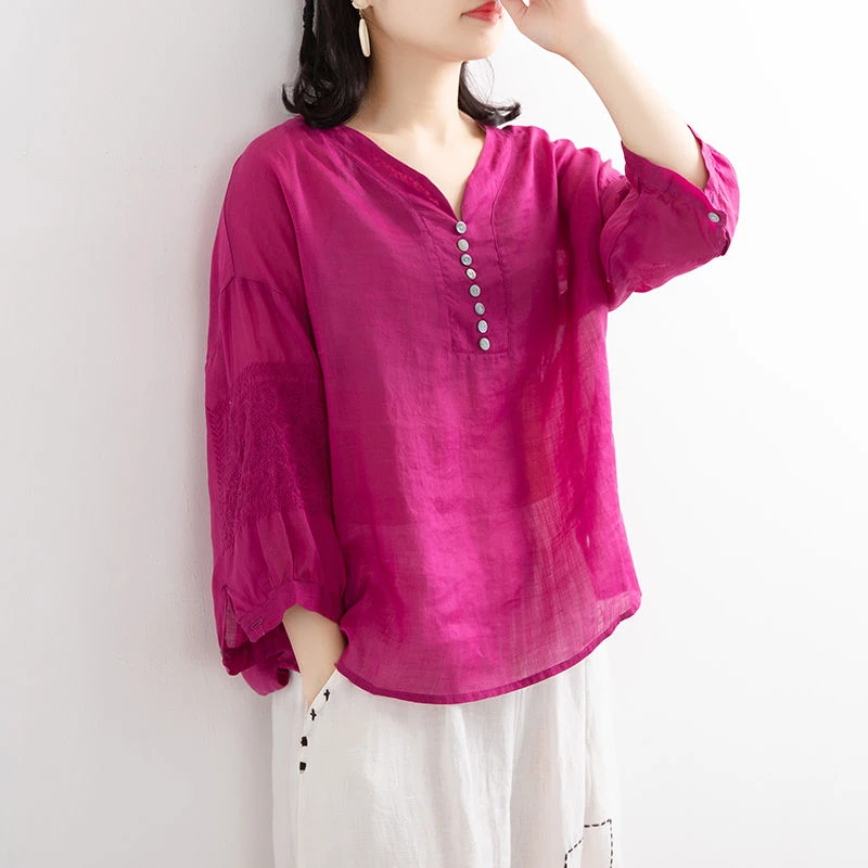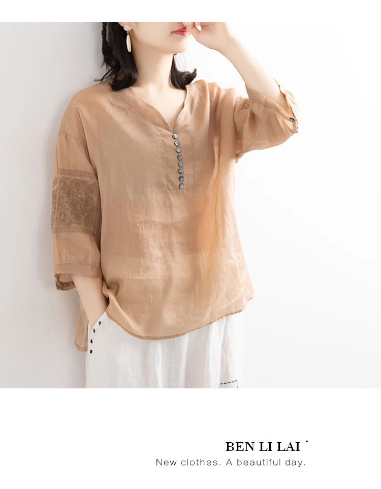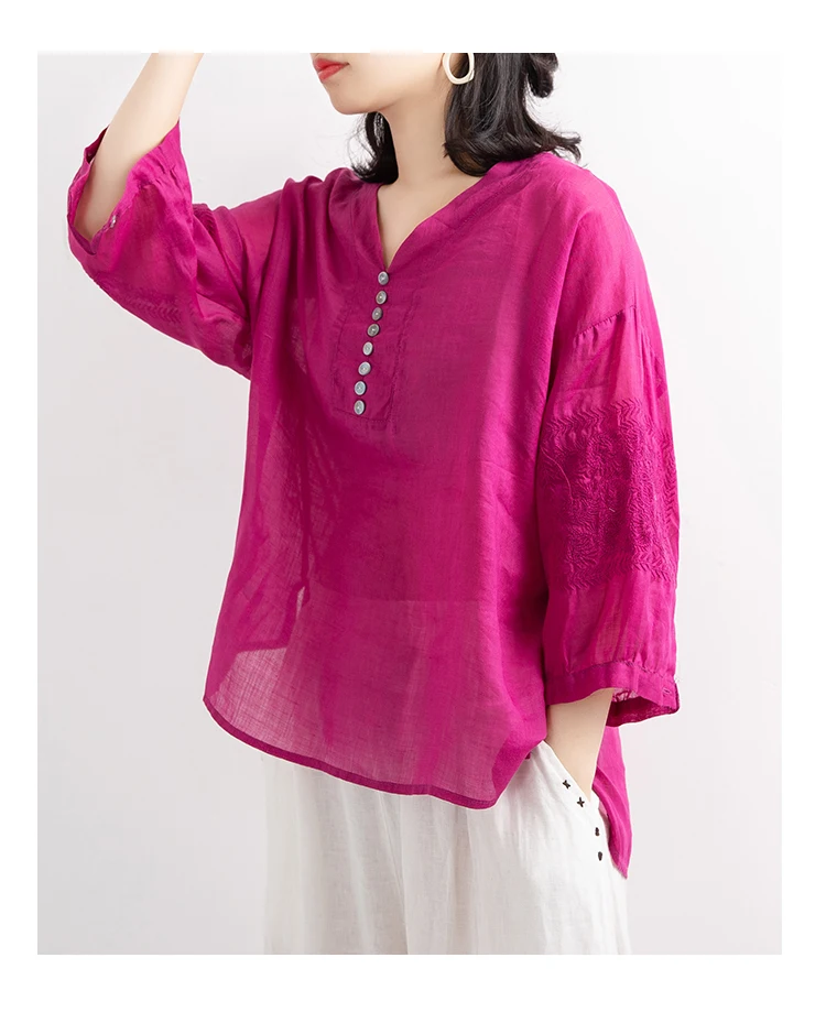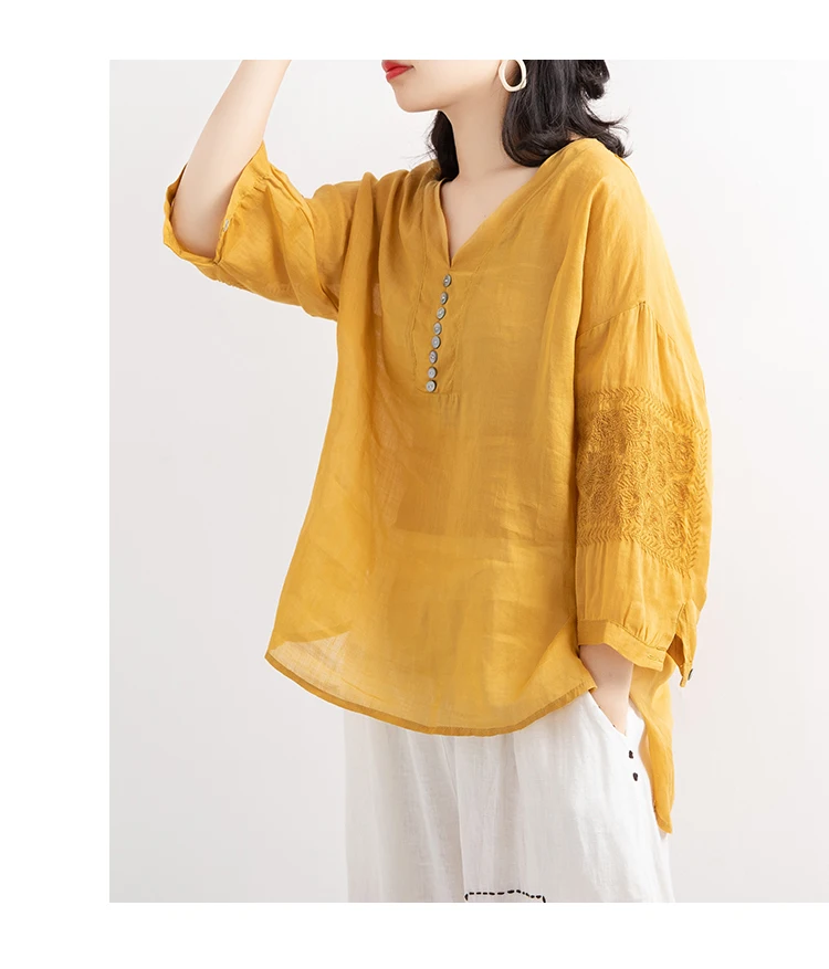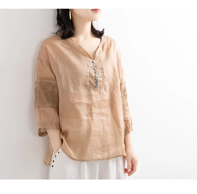 Рубашка женская Свободная с коротким рукавом, хлопково-Льняная винтажная блузка с V-образным вырезом, в арт-стиле, M120, лето 2020